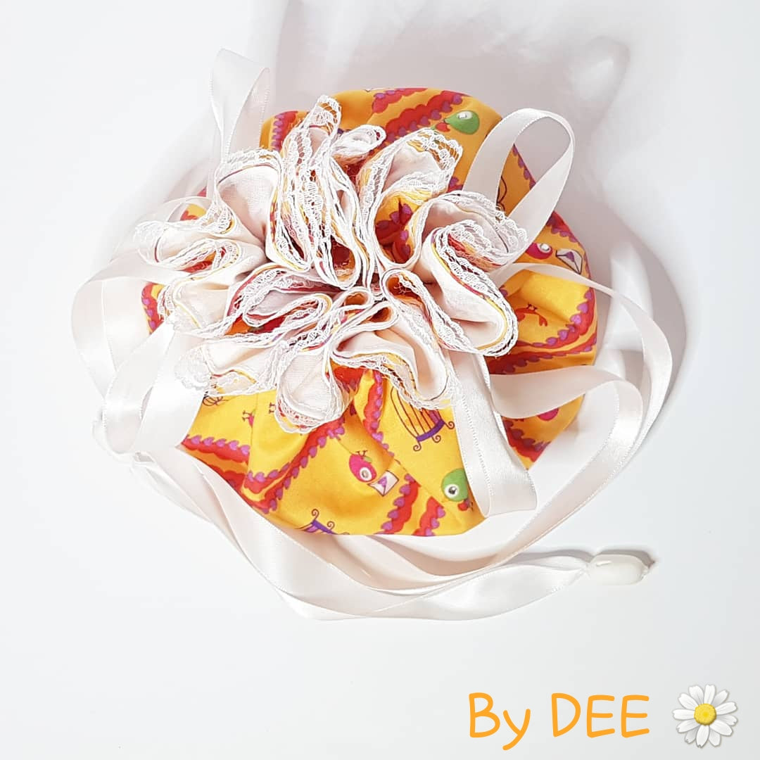 ✿ Material: 100% Bomuld Oeko-tex Standard 100 & silkebånd som snore