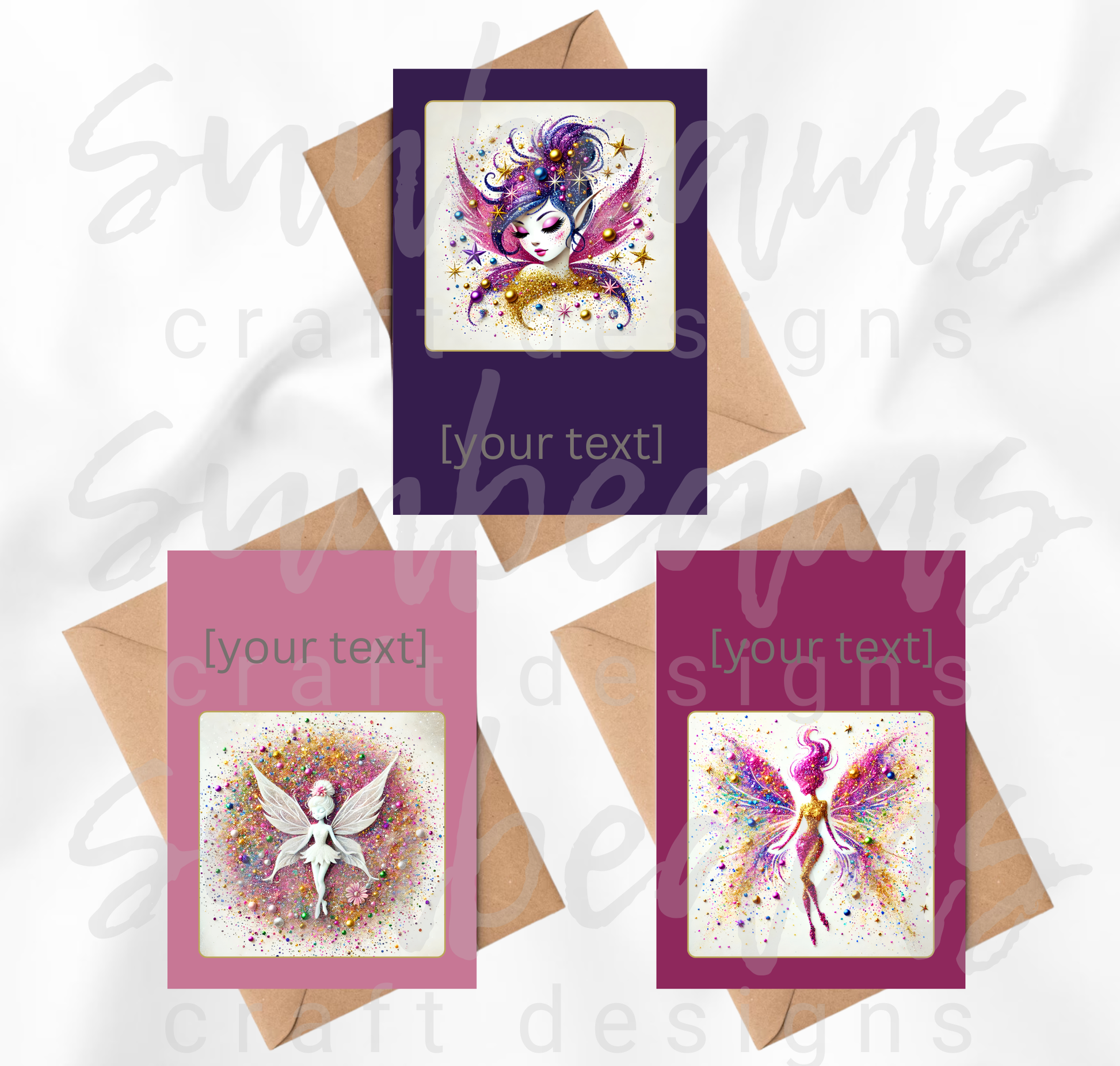 Each digital image is provided in PNG, JPG & SVG high-quality formats, with a resolution of 3966 x 2795 pixels (A5 format), ensuring clear, sharp details in your designs. On some of the images there is a space above or below the faery image where you may add your very own greeting card text.