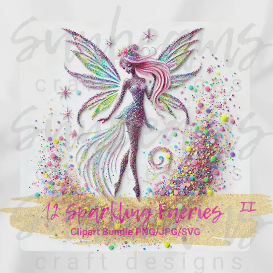 Introducing my “12 Sparkling Faeries II - Clipart Digital Image Bundle“ - a unique, elegant and sparkling collection of 12 high-quality digital images for all FAERY & GLITTER LOVERS! These popular clipart digital images are perfect for adding a touch of fantasy and glitter to your greeting cards or scrapbooking projects.