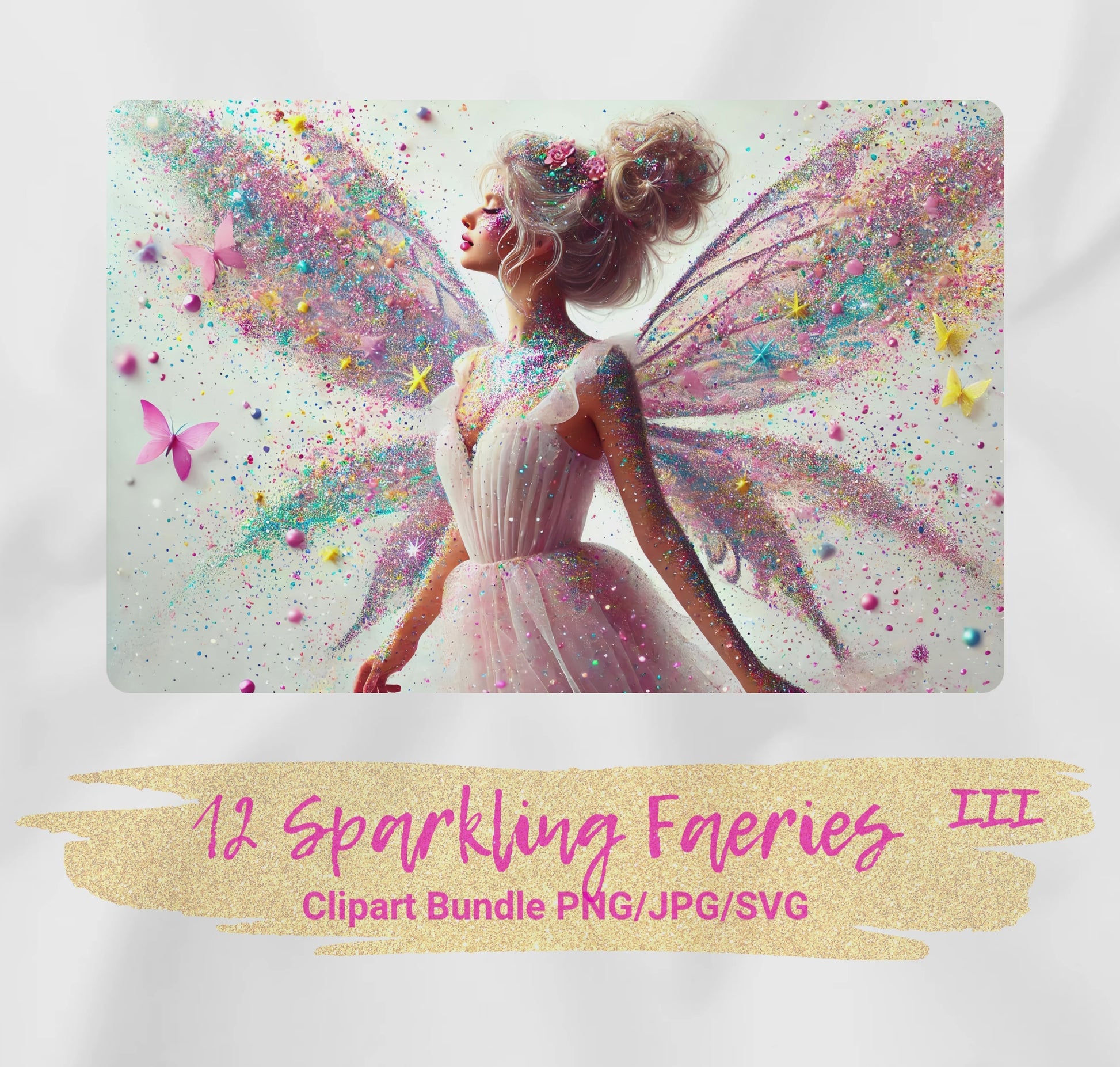 Introducing my “12 Sparkling Faeries III - Clipart Digital Image Bundle“ - a unique, elegant and sparkling collection of 12 high-quality digital images for all FAERY & GLITTER LOVERS! These popular clipart digital images are perfect for adding a touch of fantasy and glitter to your greeting cards or scrapbooking projects.