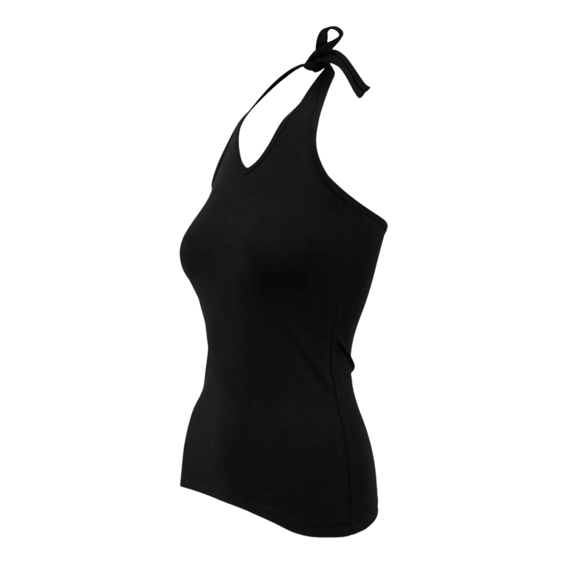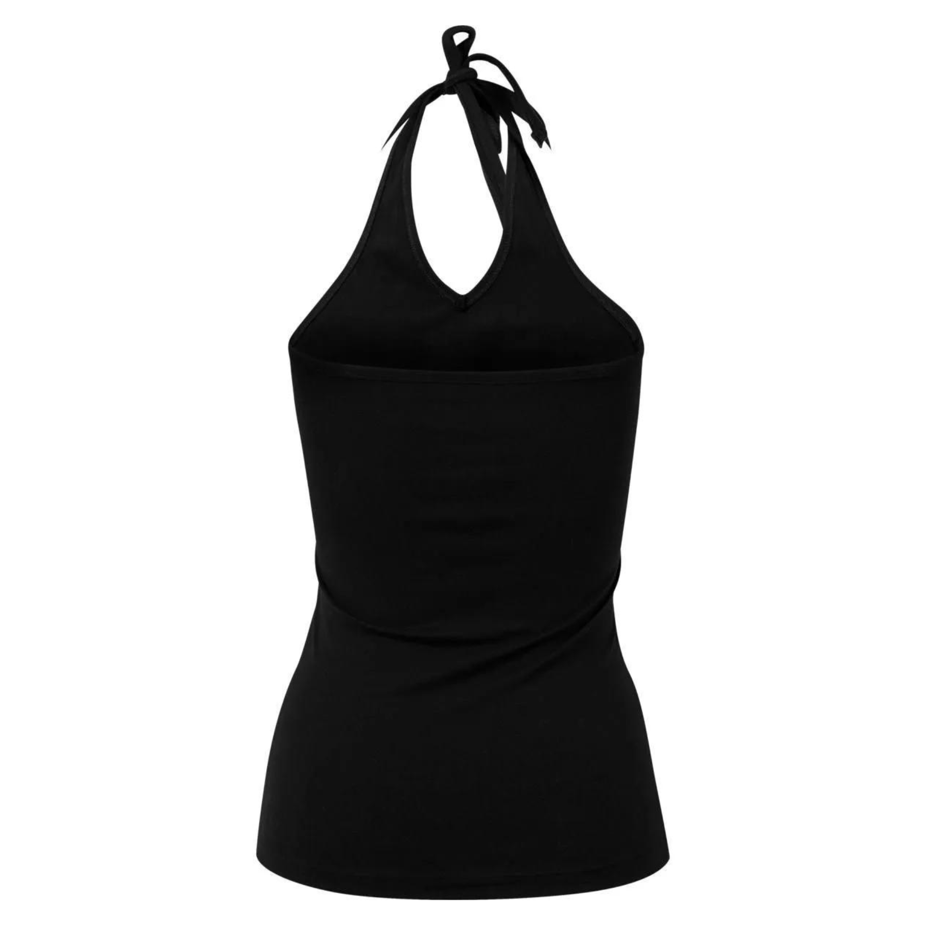 ...med denne elegante halterneck top - en traditionel sommertop med mange fordele. Blusens stropper kan snøres bagerst i nakken og på grund af det stretchy Jersey-stof giver denne feminine bluse altid en perfekt pasform med sit figursyede snit. Takket være det klassiske og feminine design kan den nemt kombineres med forskellige stilarter af bukser, nederdele, shorts eller et par jeans.