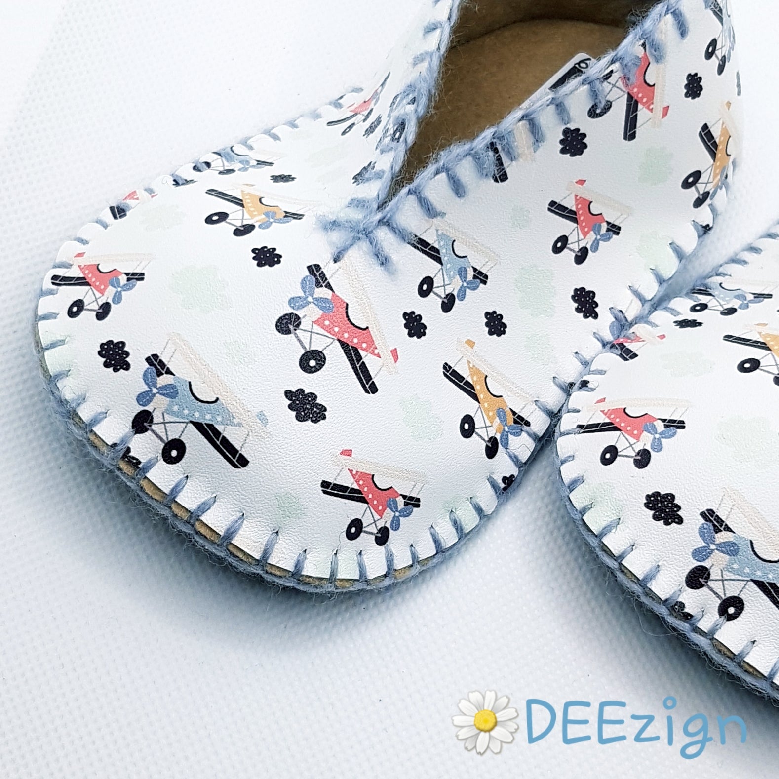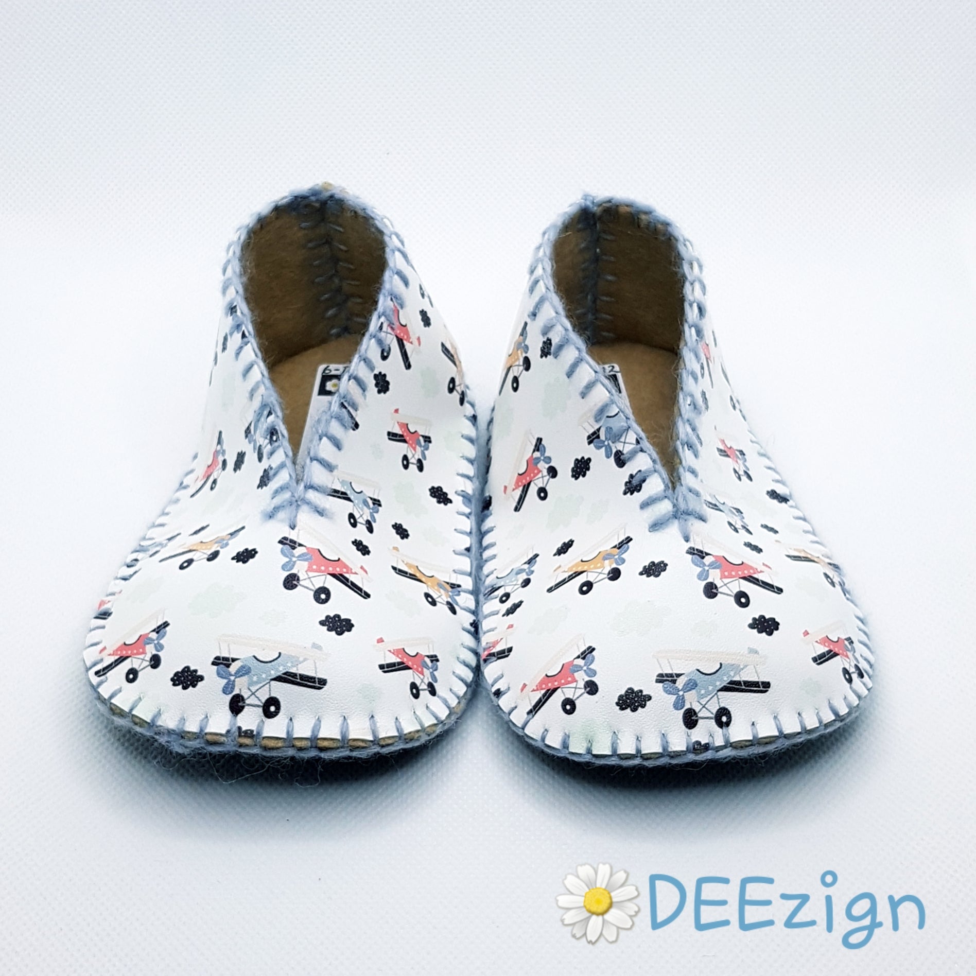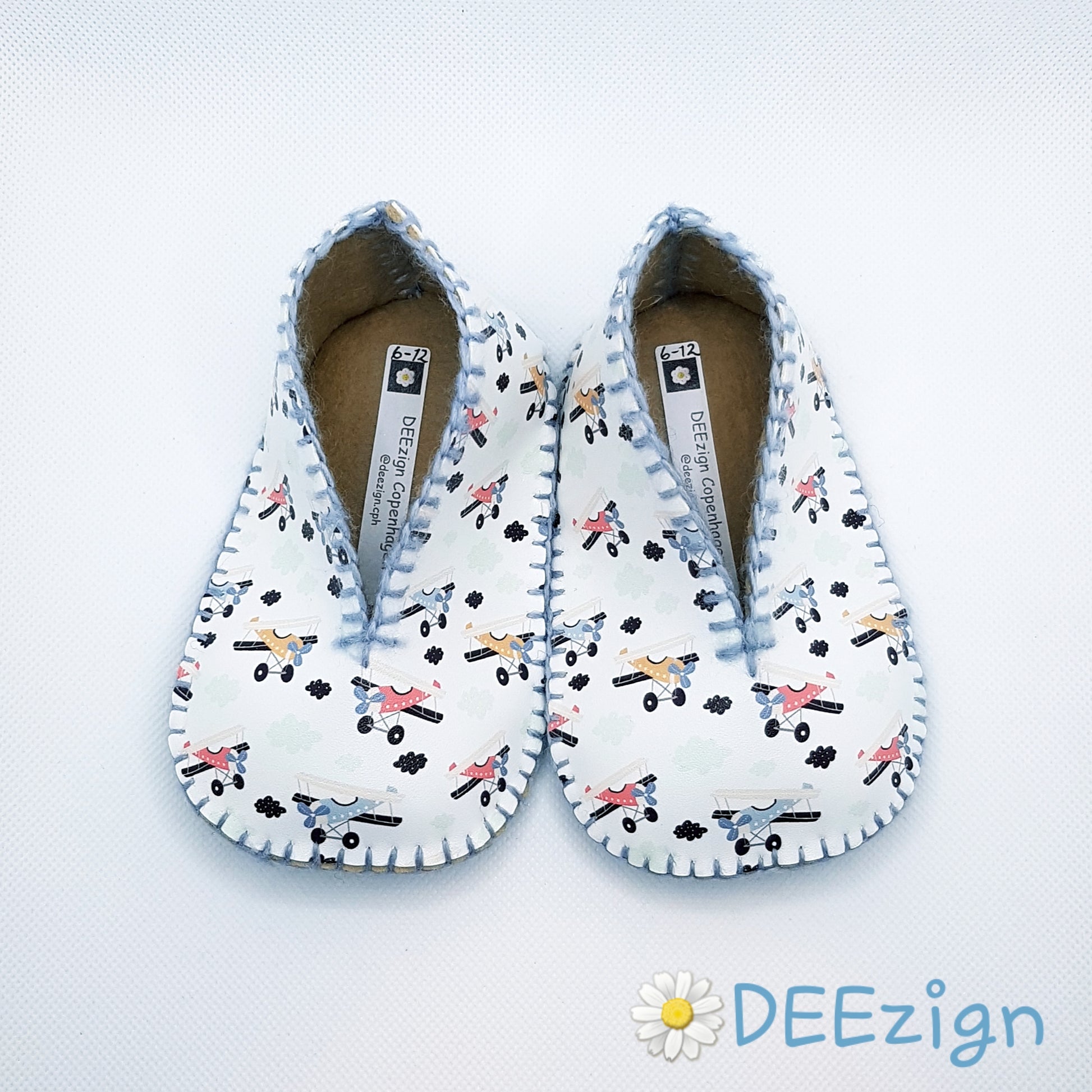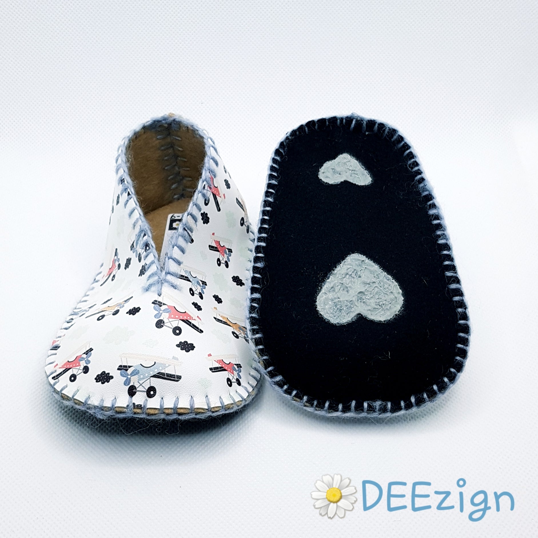 ✿ Udvendig sål: Sortfarvet 100% uldfilt pyntet med håndmalede skridsikre motiver
