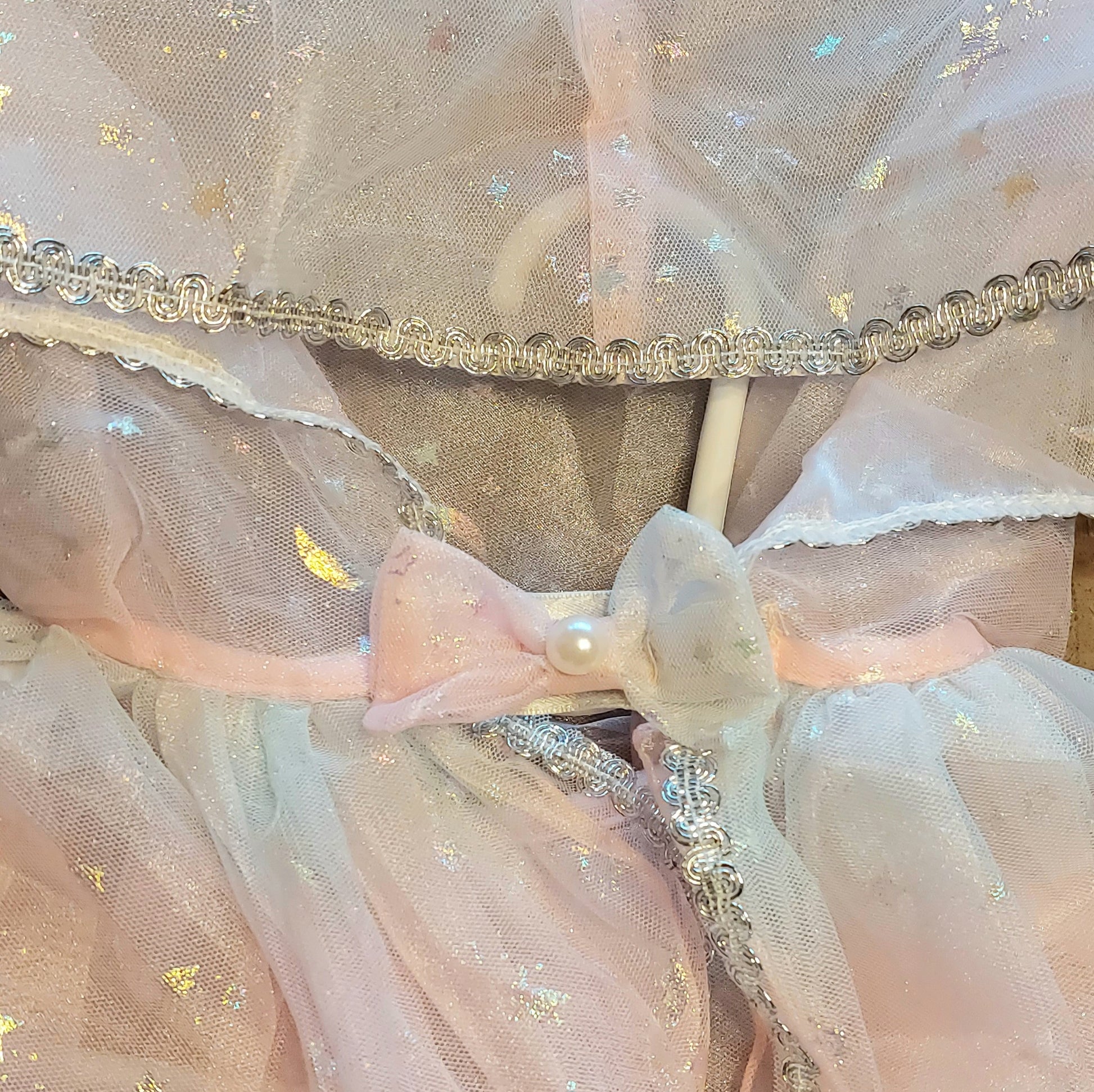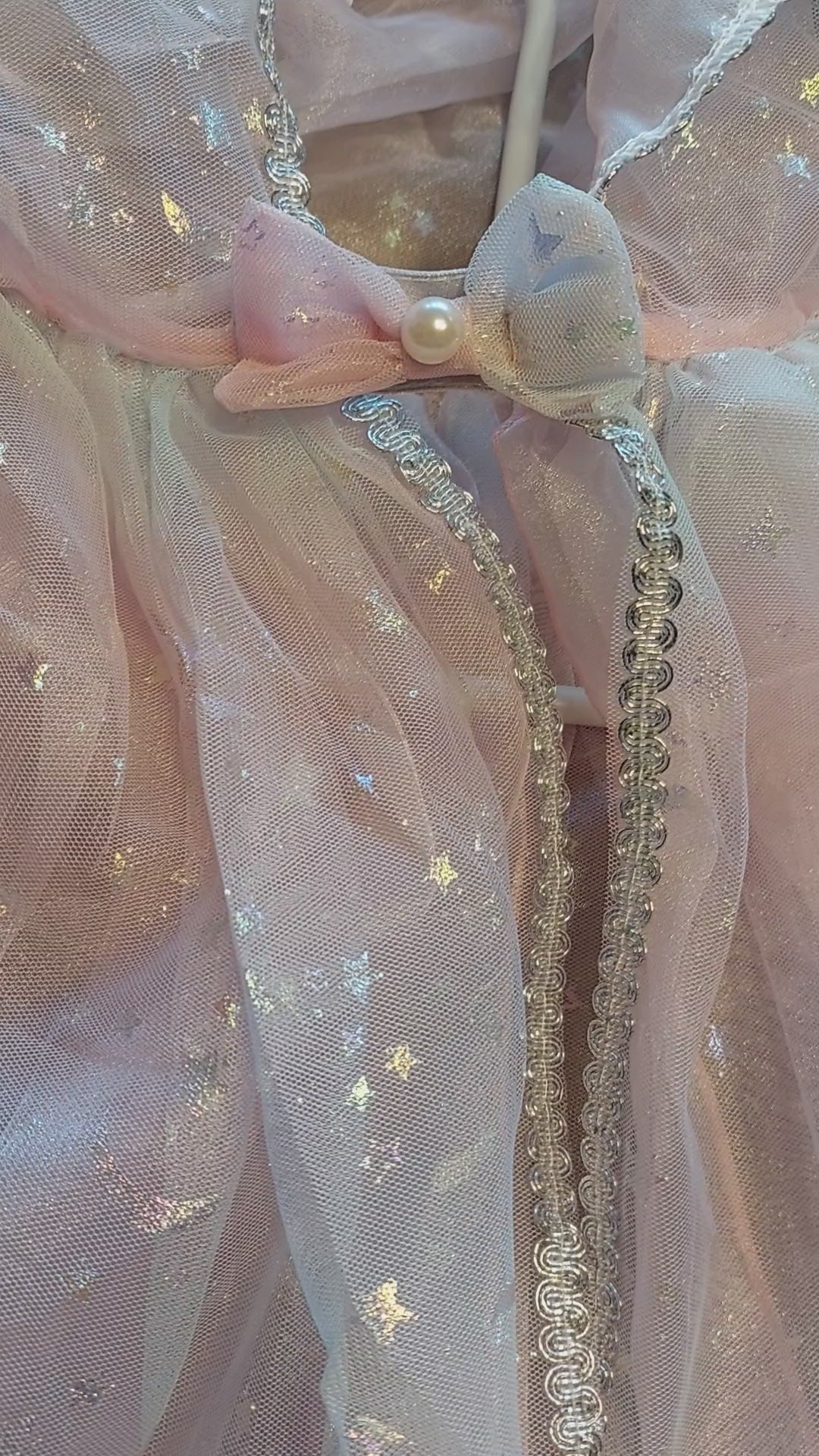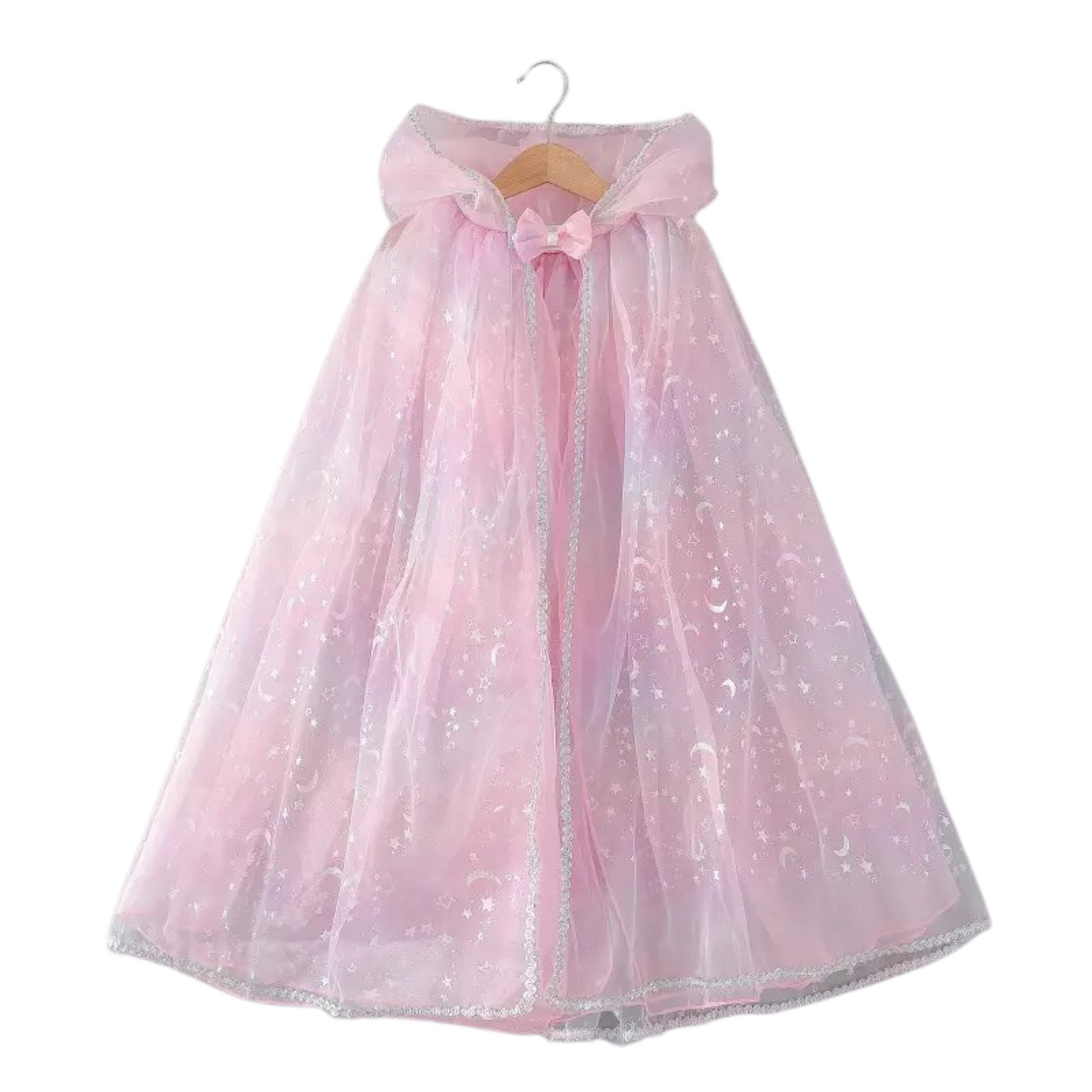 Den fortryllende kappe har en fin hætte og er pyntet med motiver af glitrende regnbue- og guldfarvede stjerner og måner.