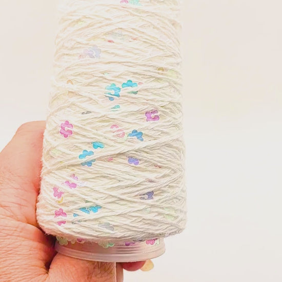 Ultra cool og iøjenfaldende 100% bomuld med blomster pailletter - garn pyntet med et 'sparkling' mix af store og små pailletter. 'Touch of Sparkle' er en glimrende og festlig tilføjelse til dine strikke- eller hækleprojekter og fungerer både som følgetråd eller alene.