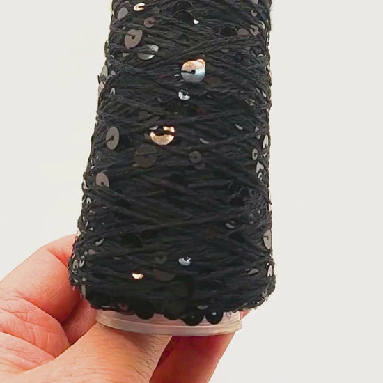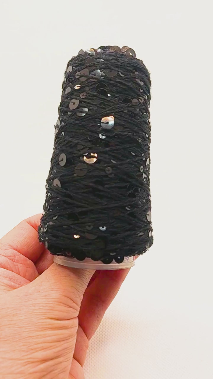 Garn - 50g - Touch of Sparkle - Sort med sorte pailletter