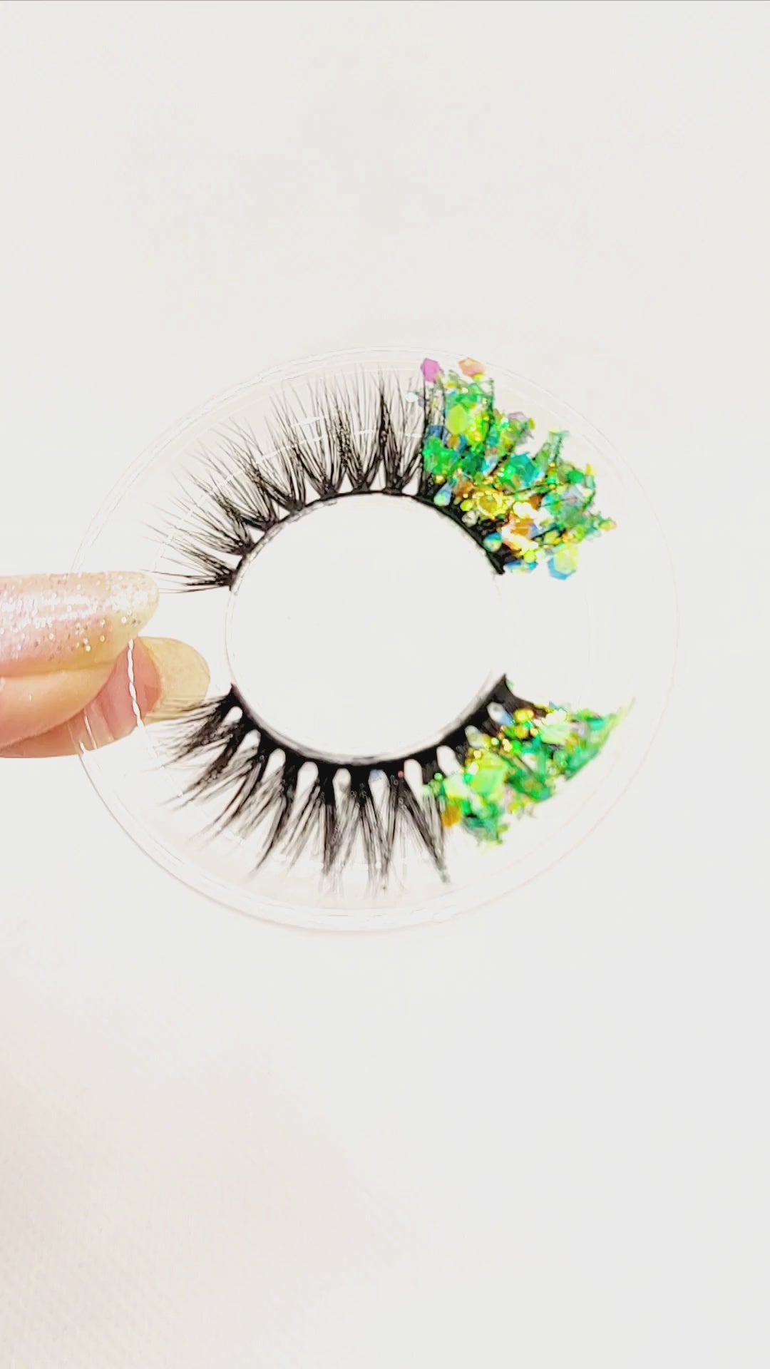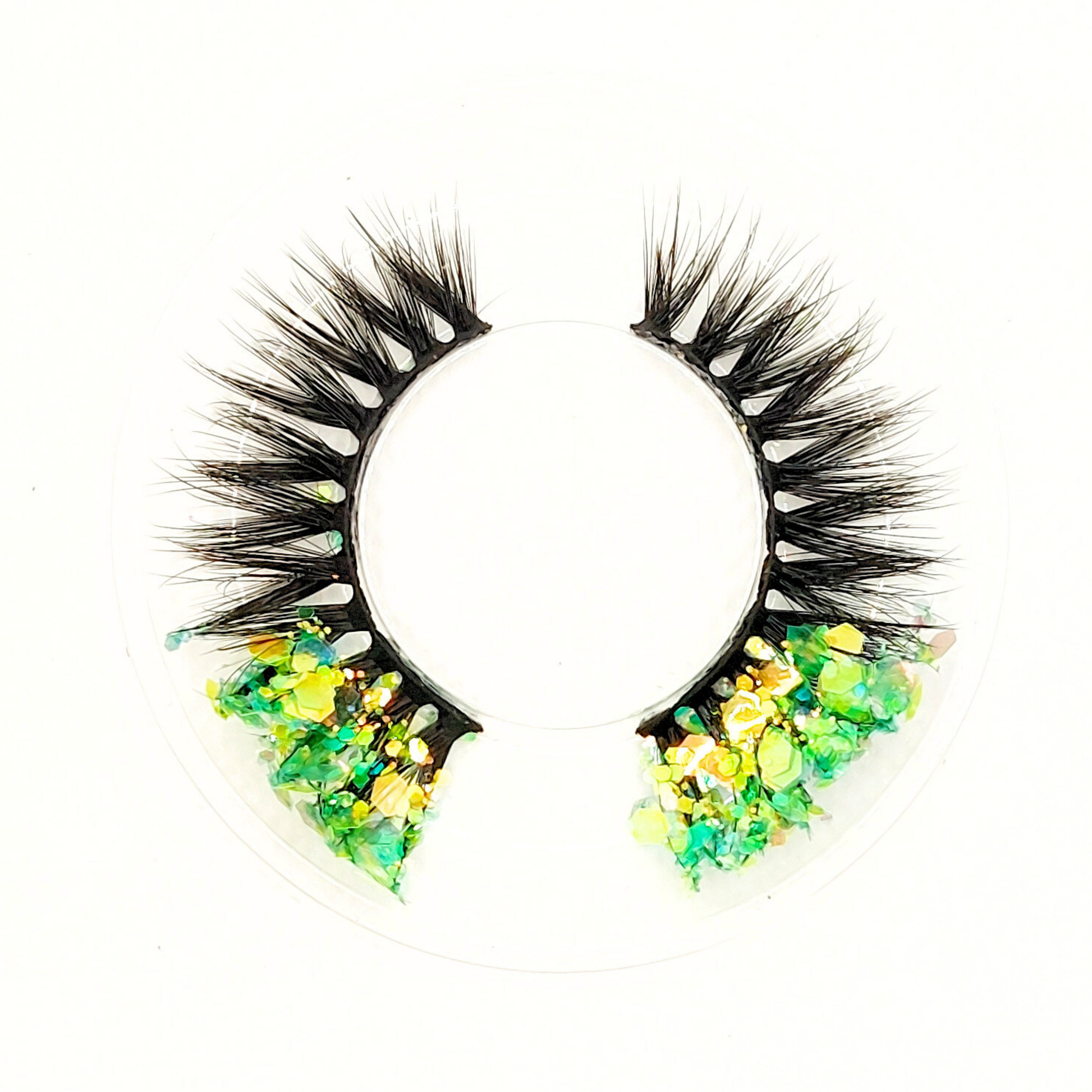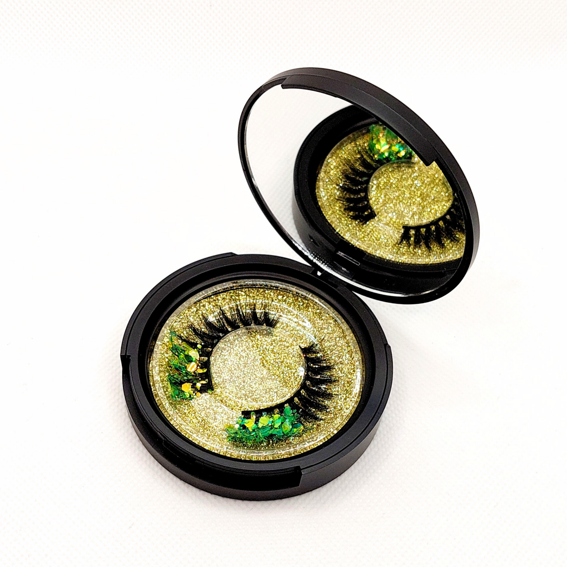 Gold Mojito øjenvipper - 8mm - Luksuriøse m. Grøn & Guld glimmer (reusable 25x)