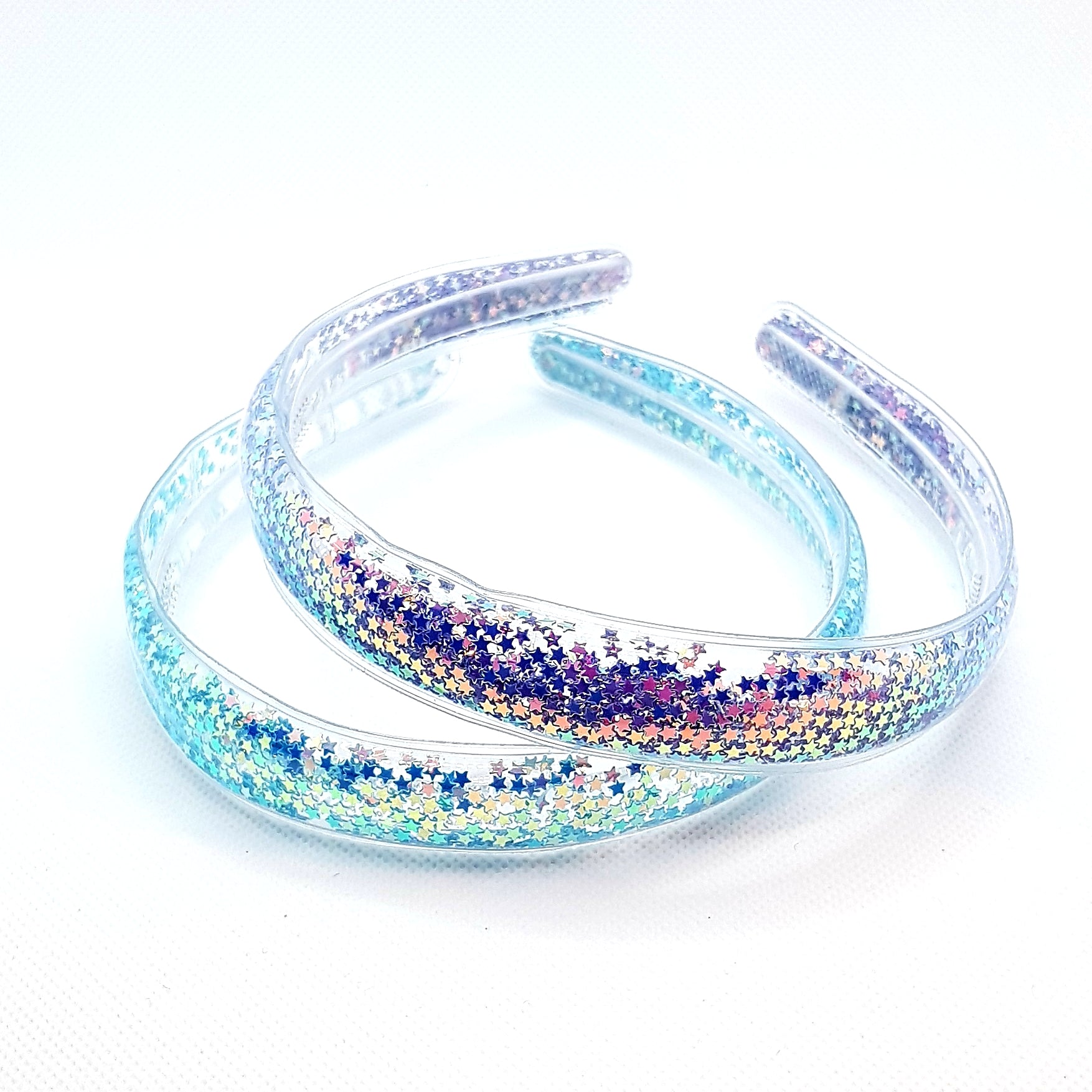 Cute shaker hårbøjle pyntet med funklende confetti stjerner.