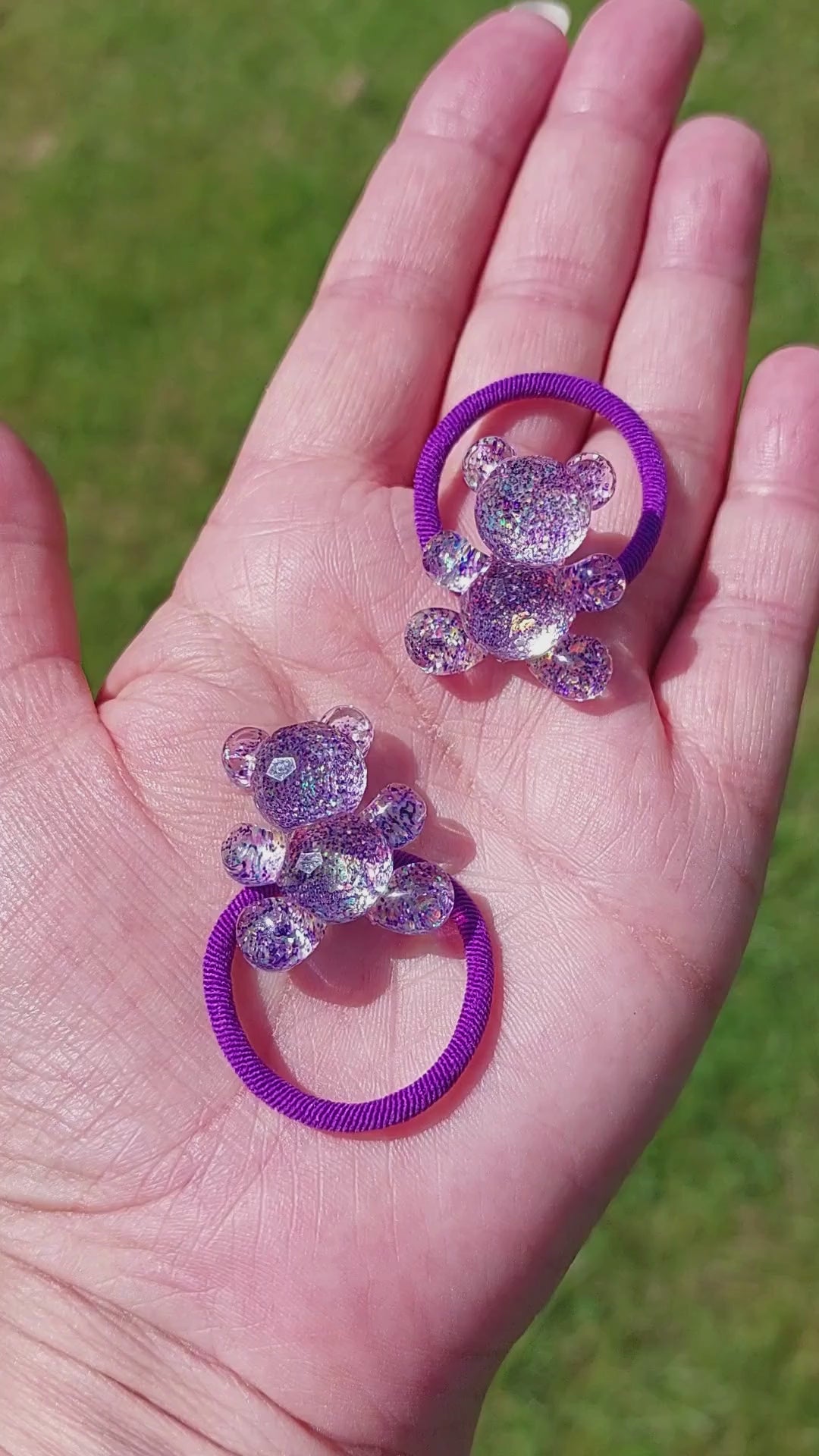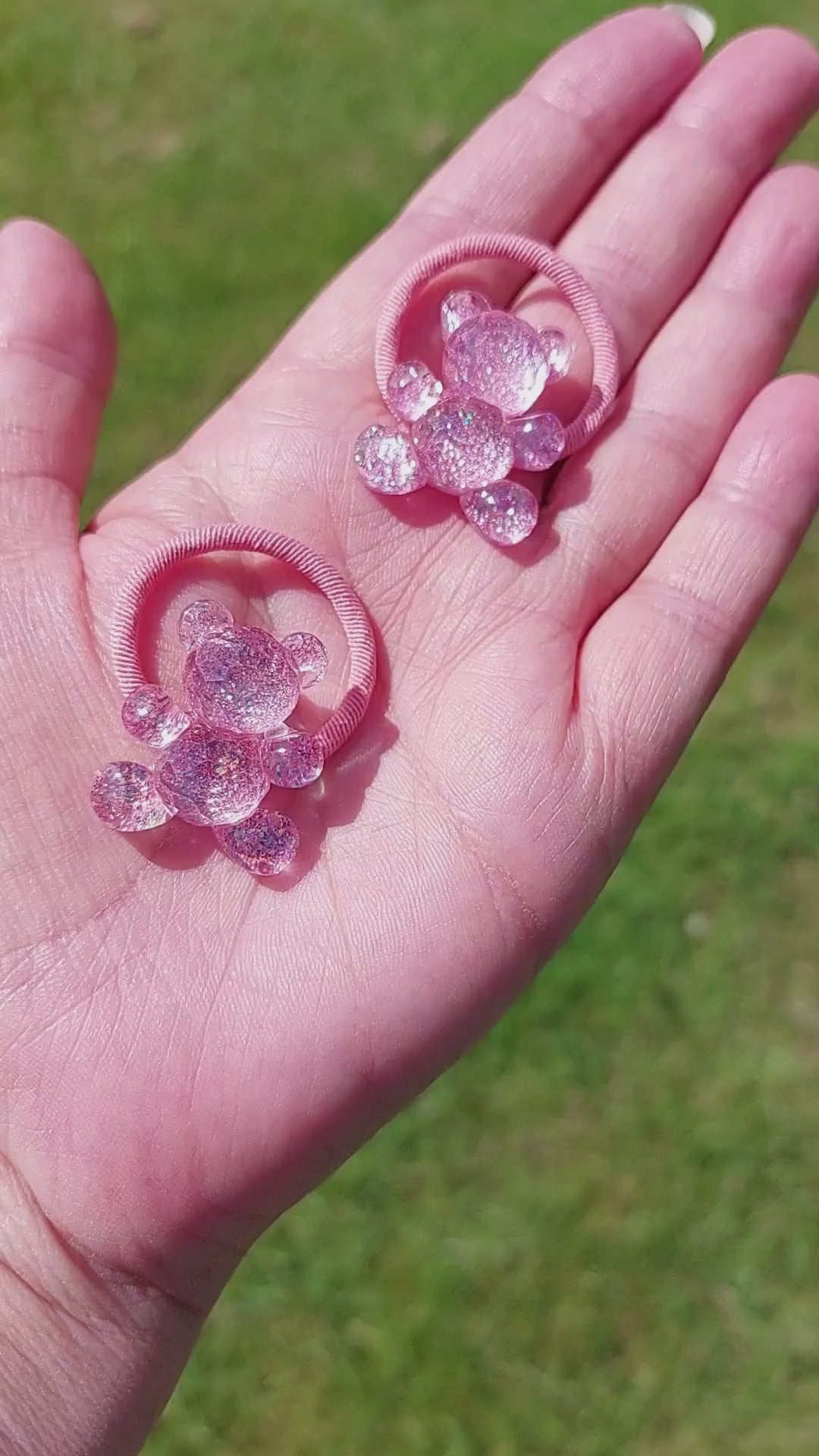 Mega nuttede og funklende Teddy Bjørn hårelastikker lavet af resin.