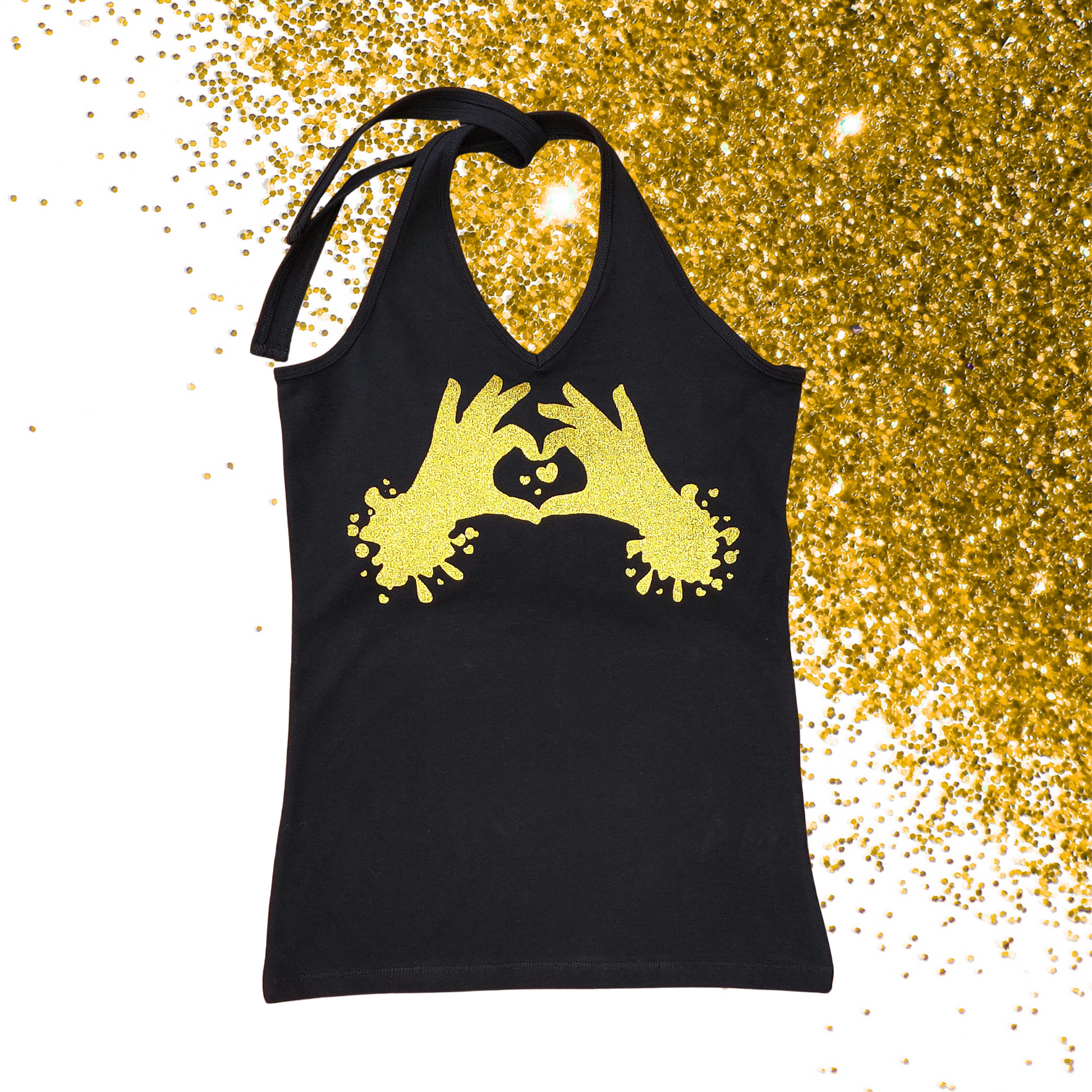 Medium - Halterneck Top - Heart hands - Glimmer: guld