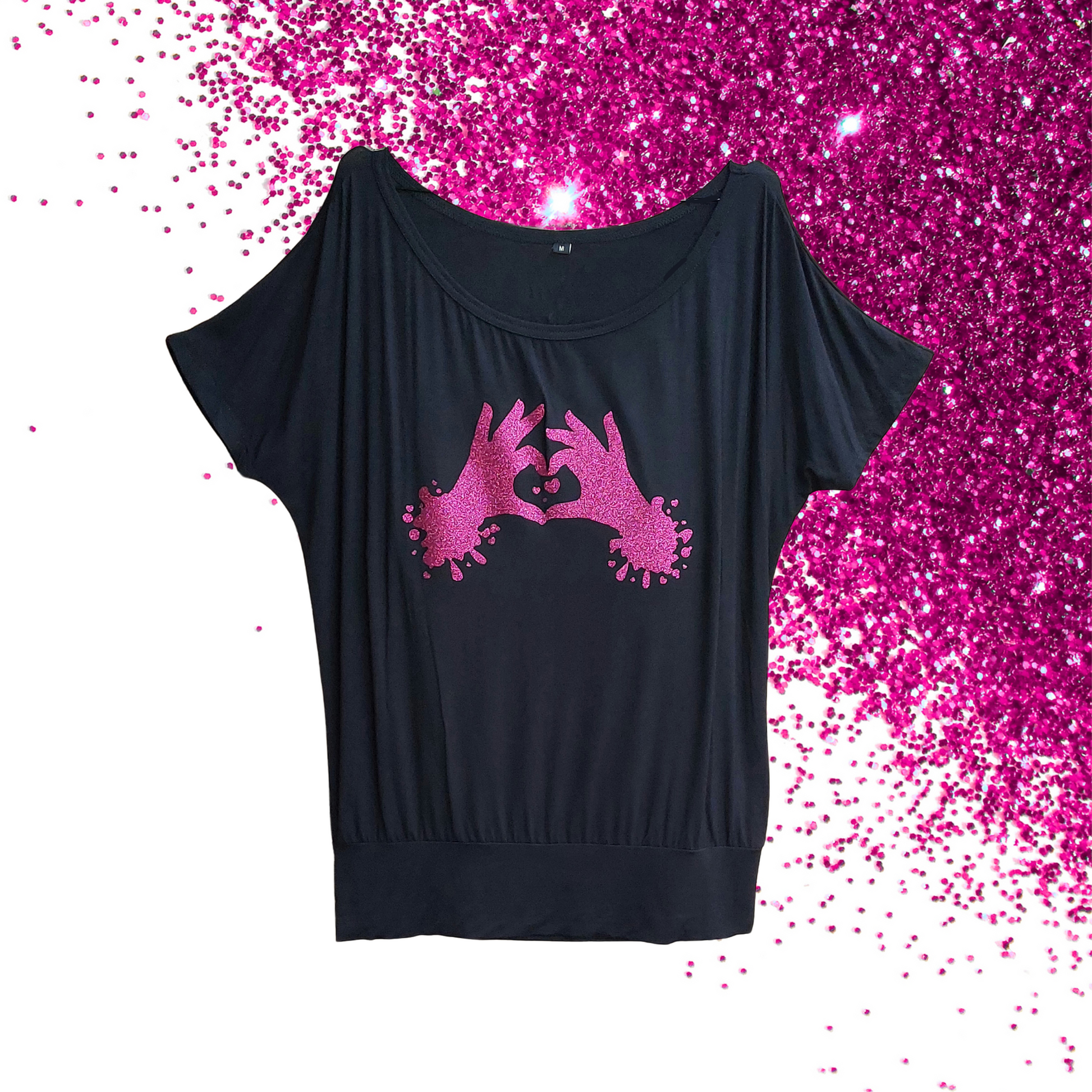 Medium - Viscose Blouse - Heart Hands - Glimmer: hot pink