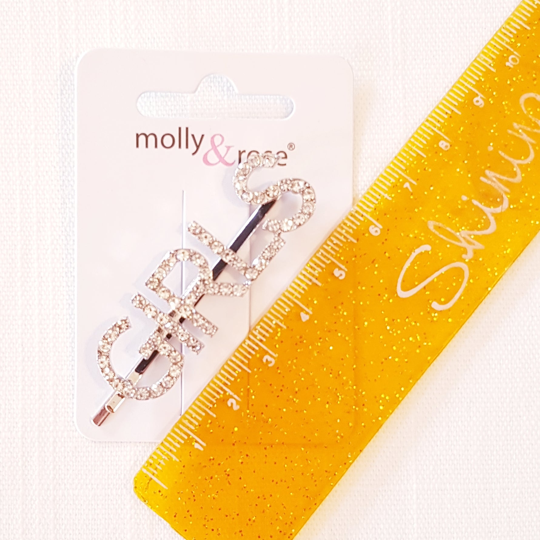 Molly & Rose hårklemme med ordet GIRLS opsat i skinnende krystaller.