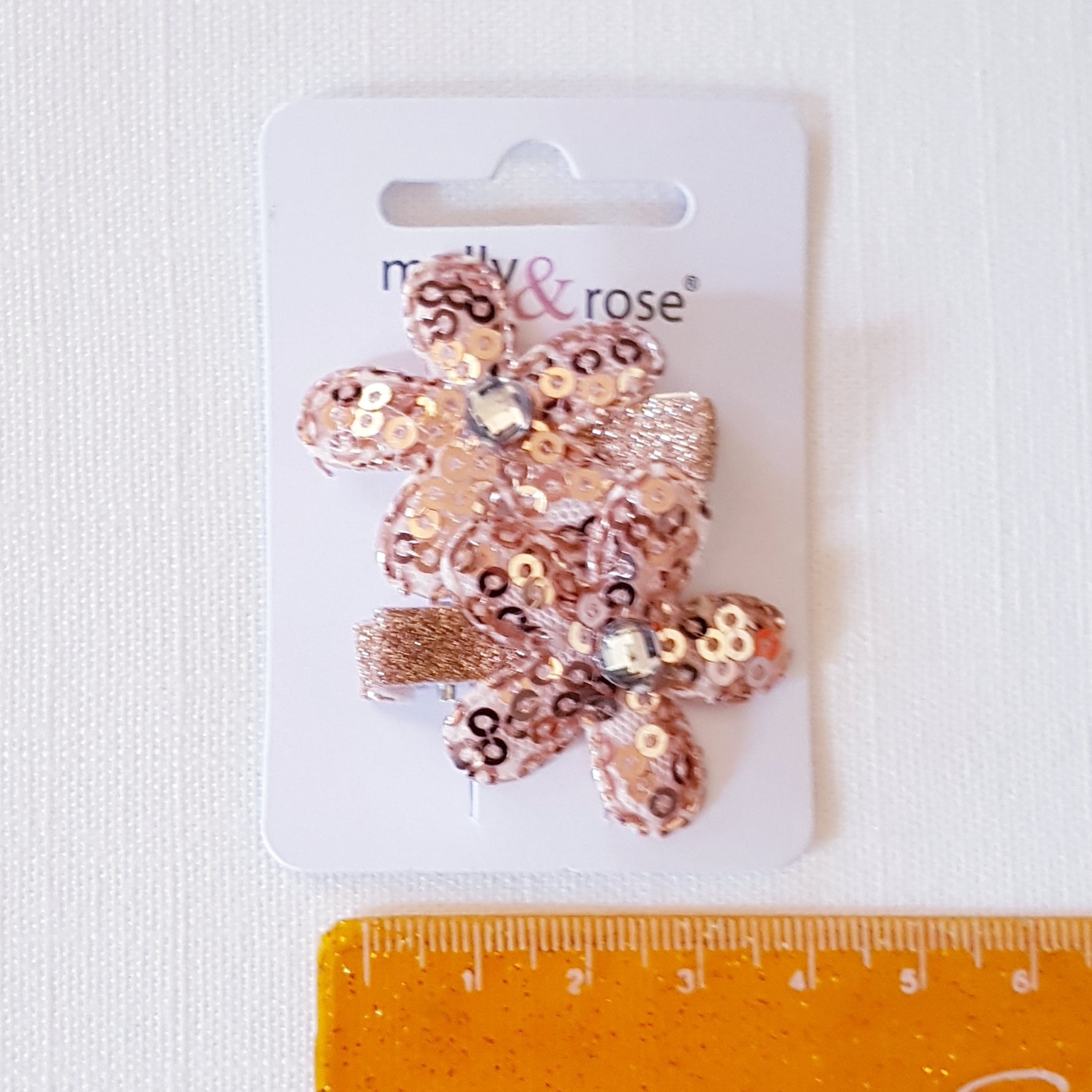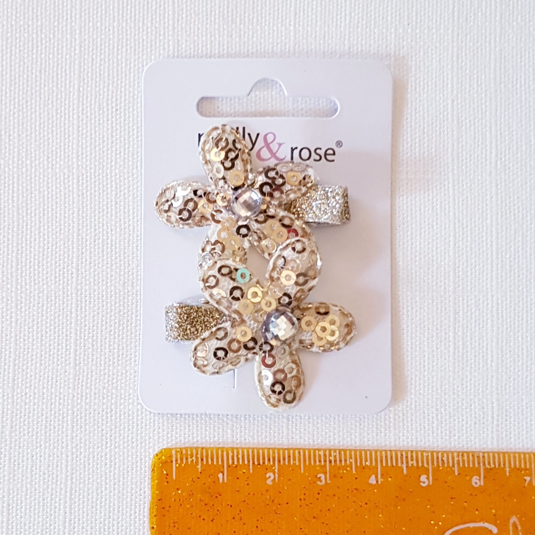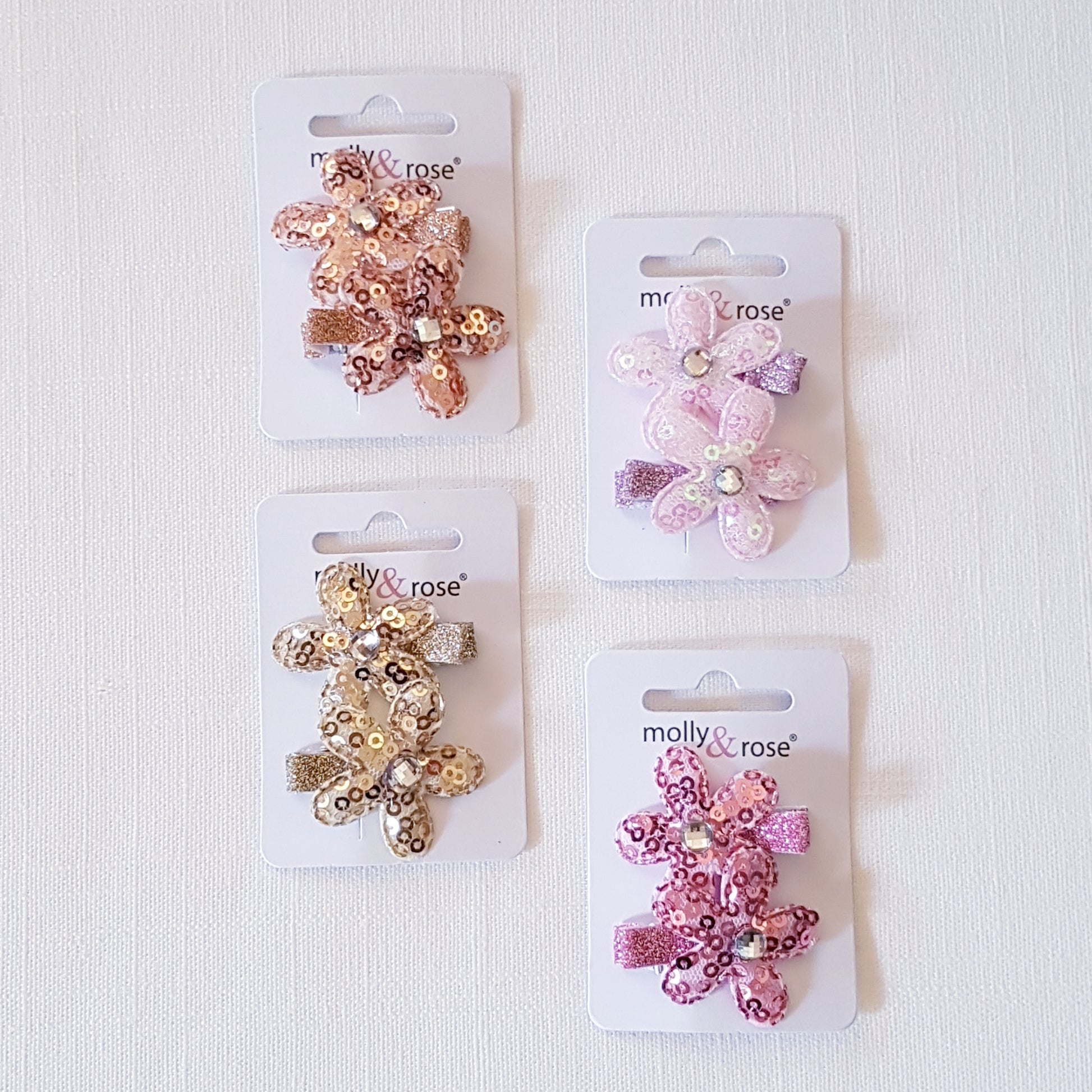 Molly & Rose hårklemmer med en paillet marguerit motiv og glimmer klemme.