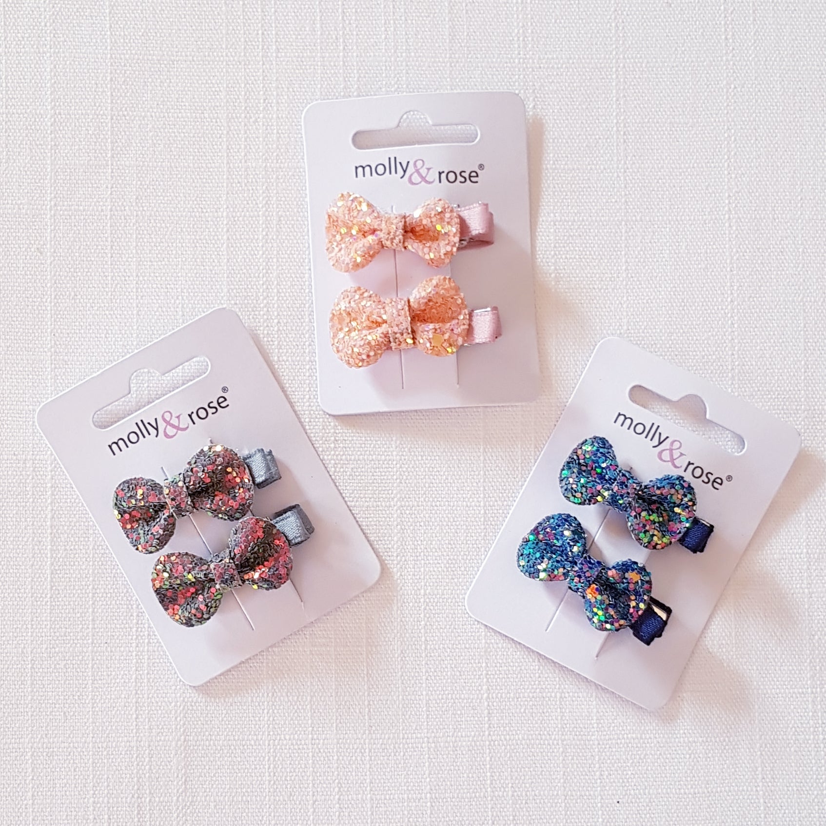 Molly & Rose hårklemmer med en chunky glimmer sløjfe.