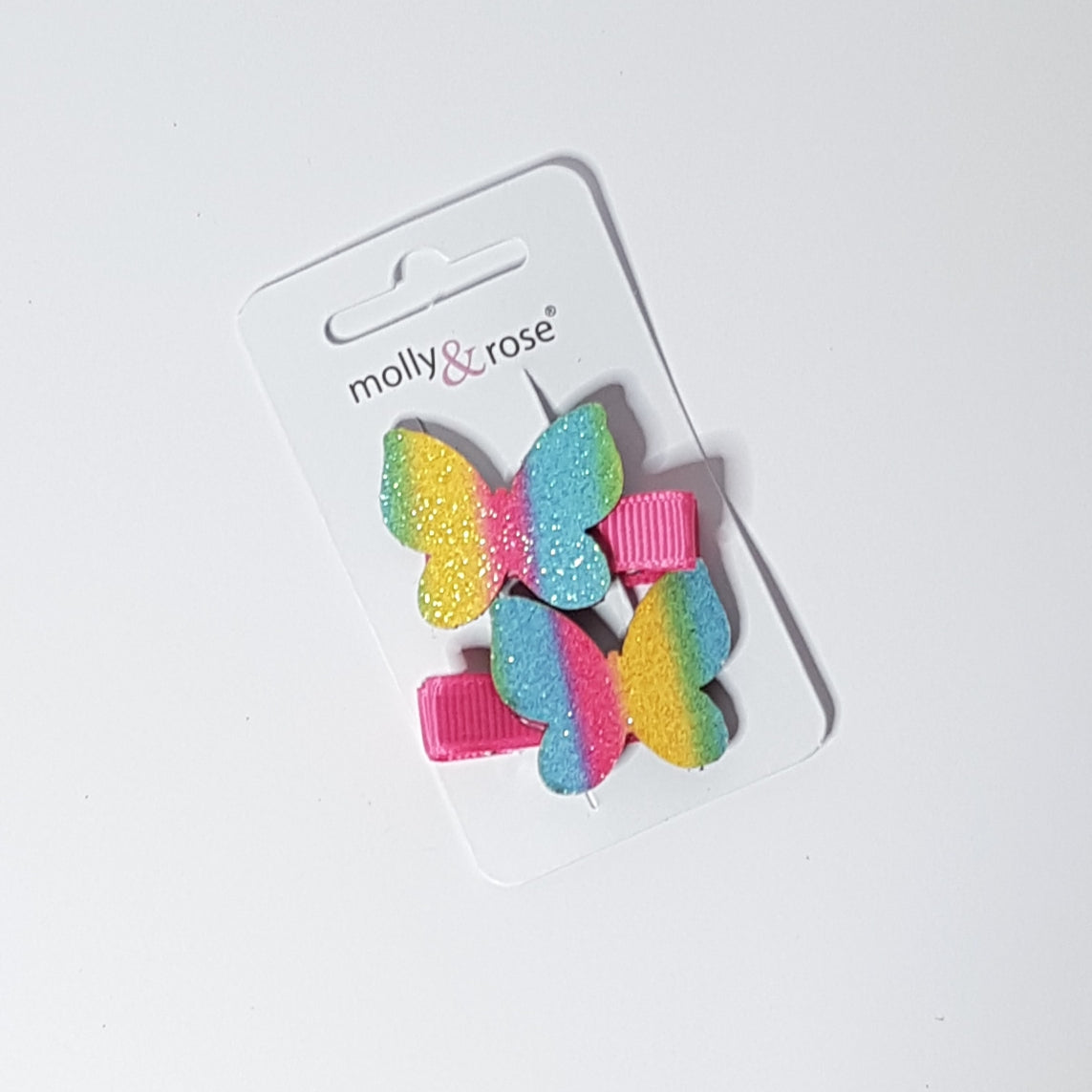 Molly & Rose - Hårklemmer 2 stk. - Sommerfugl Regnbue-farvet