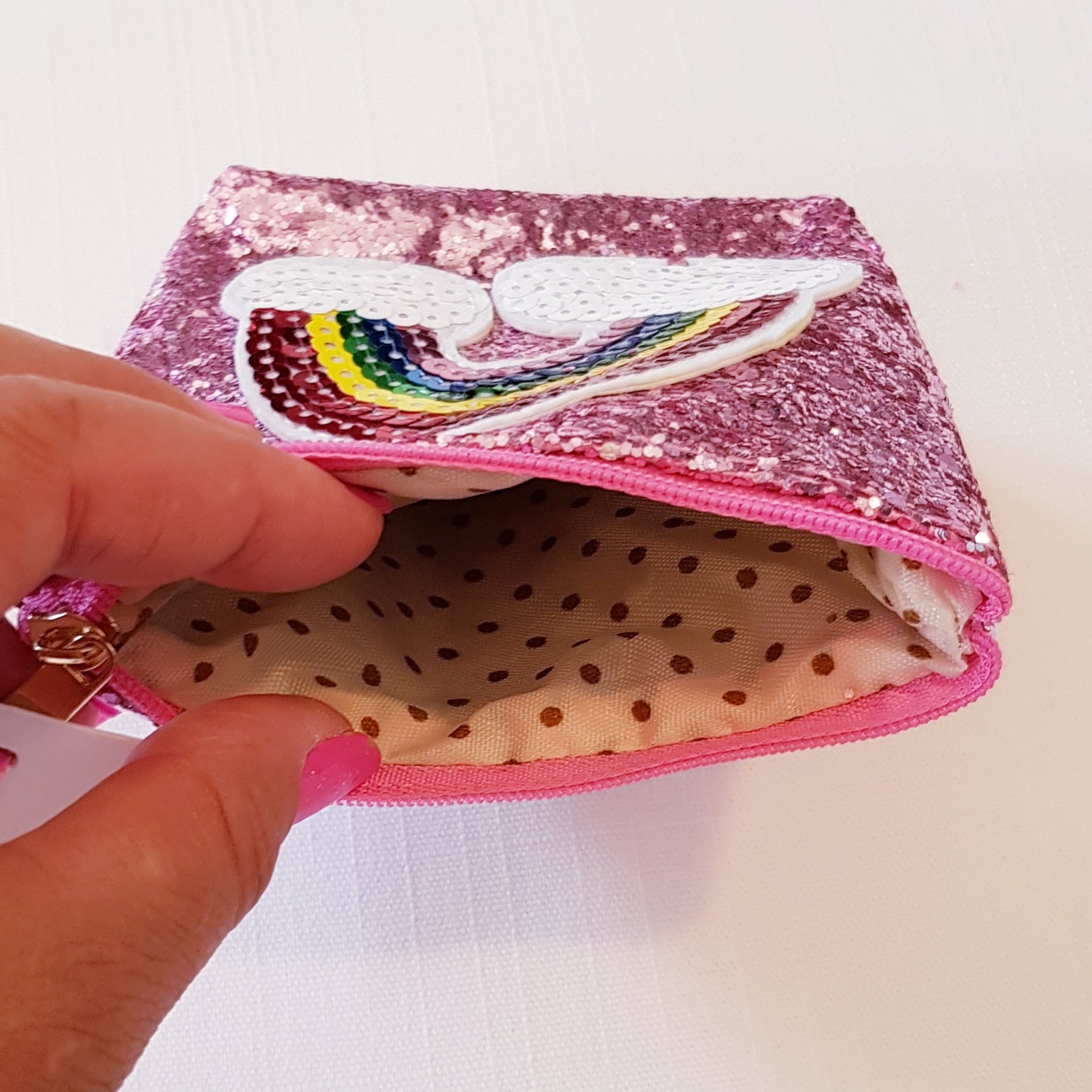 Eventyrlig og sød pung fra det populære UK mærke - Molly & Rose. Kan bruges sammen med vores andre glitter og regnbue produkter.