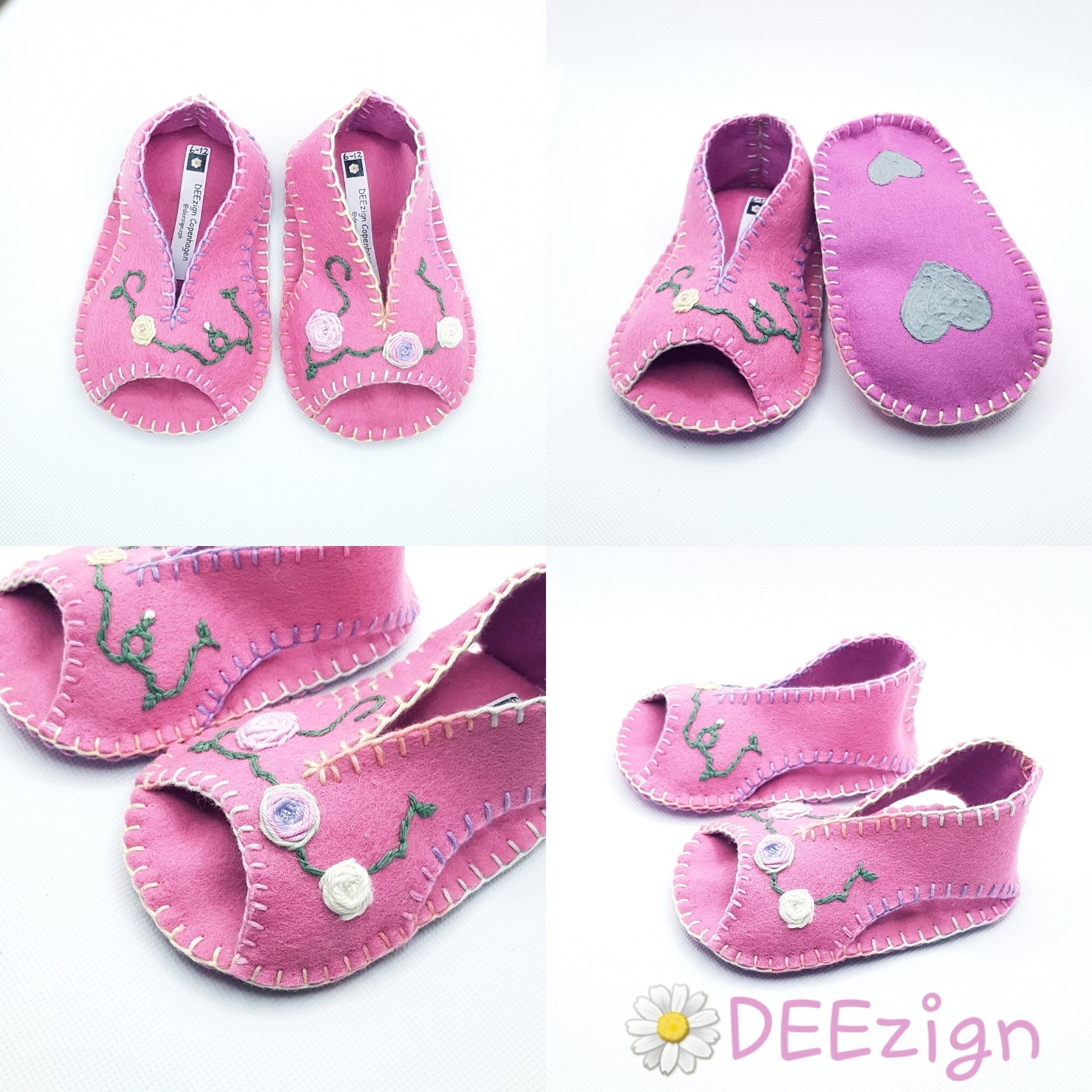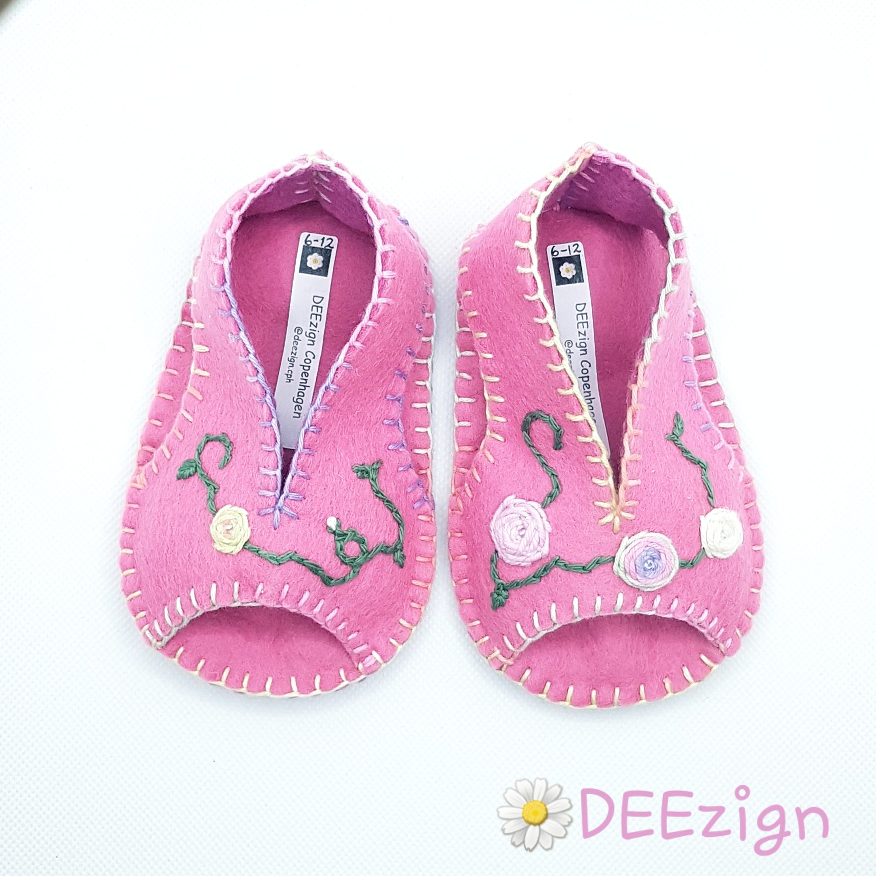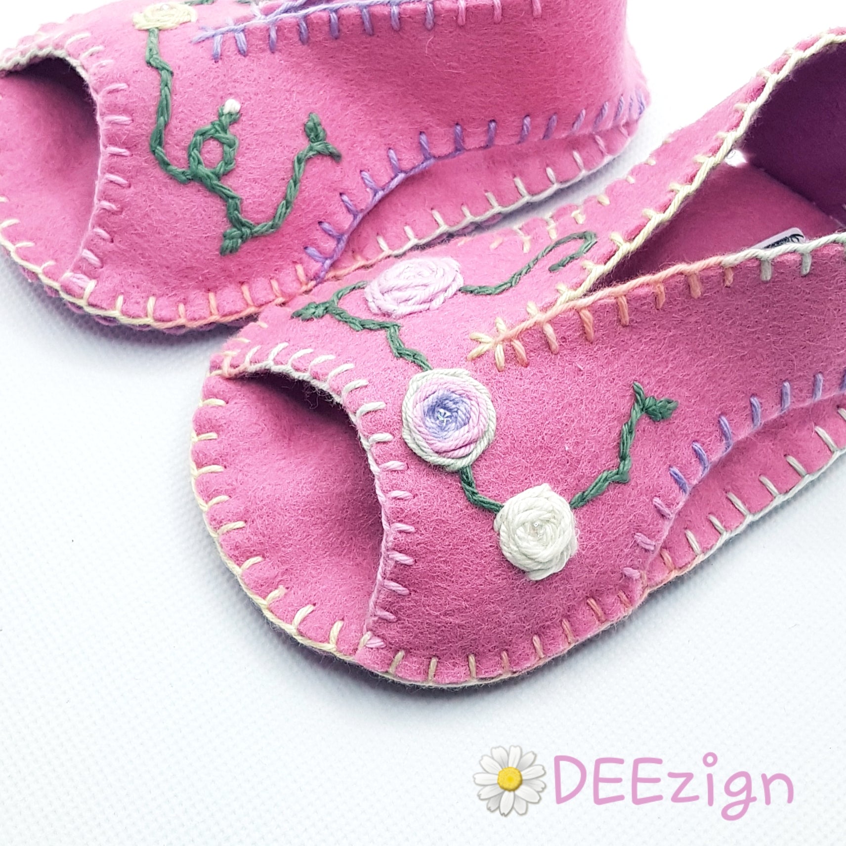 ✿ Pyntet med pæonblomstbroderi & håndmalede skridsikre motiver på sålerne