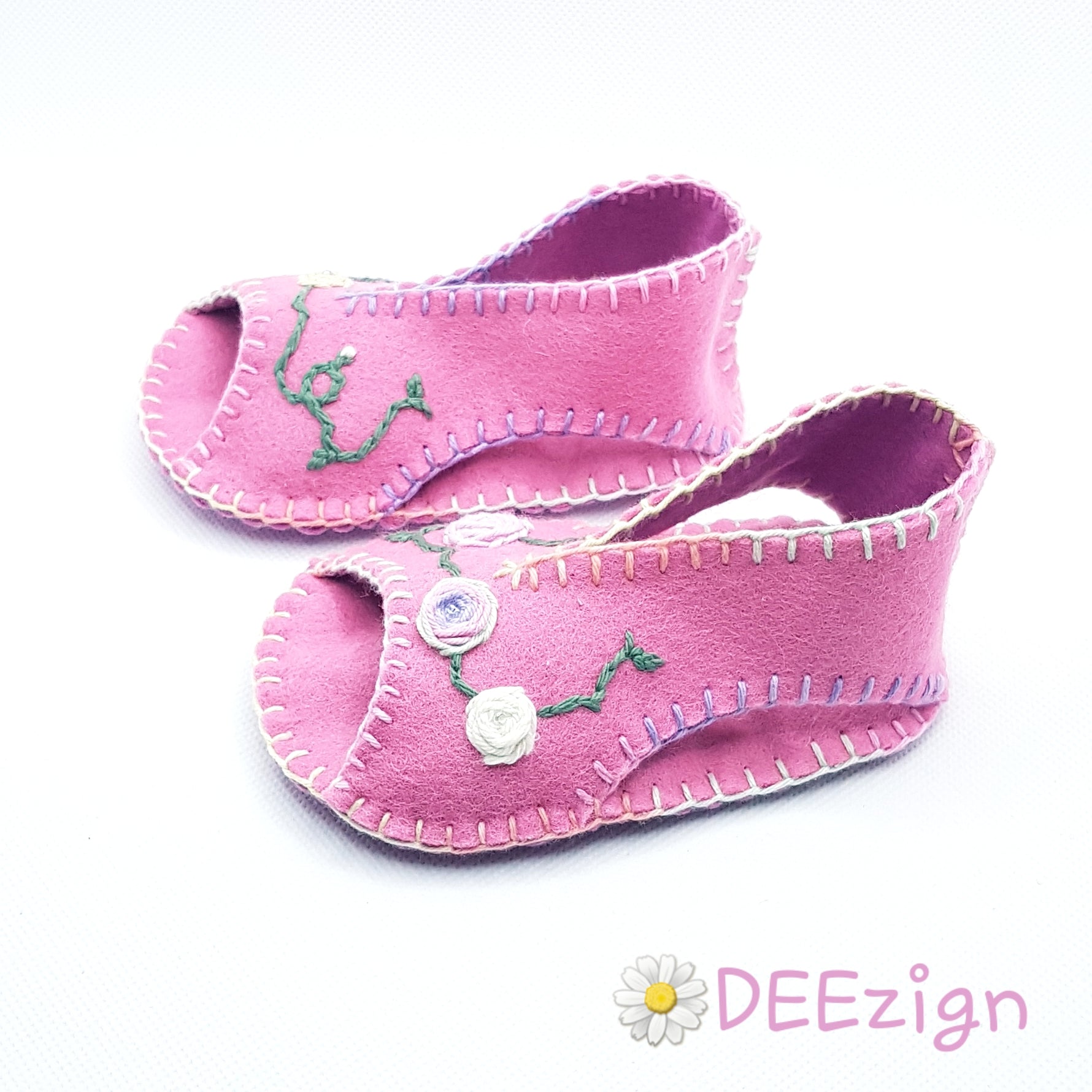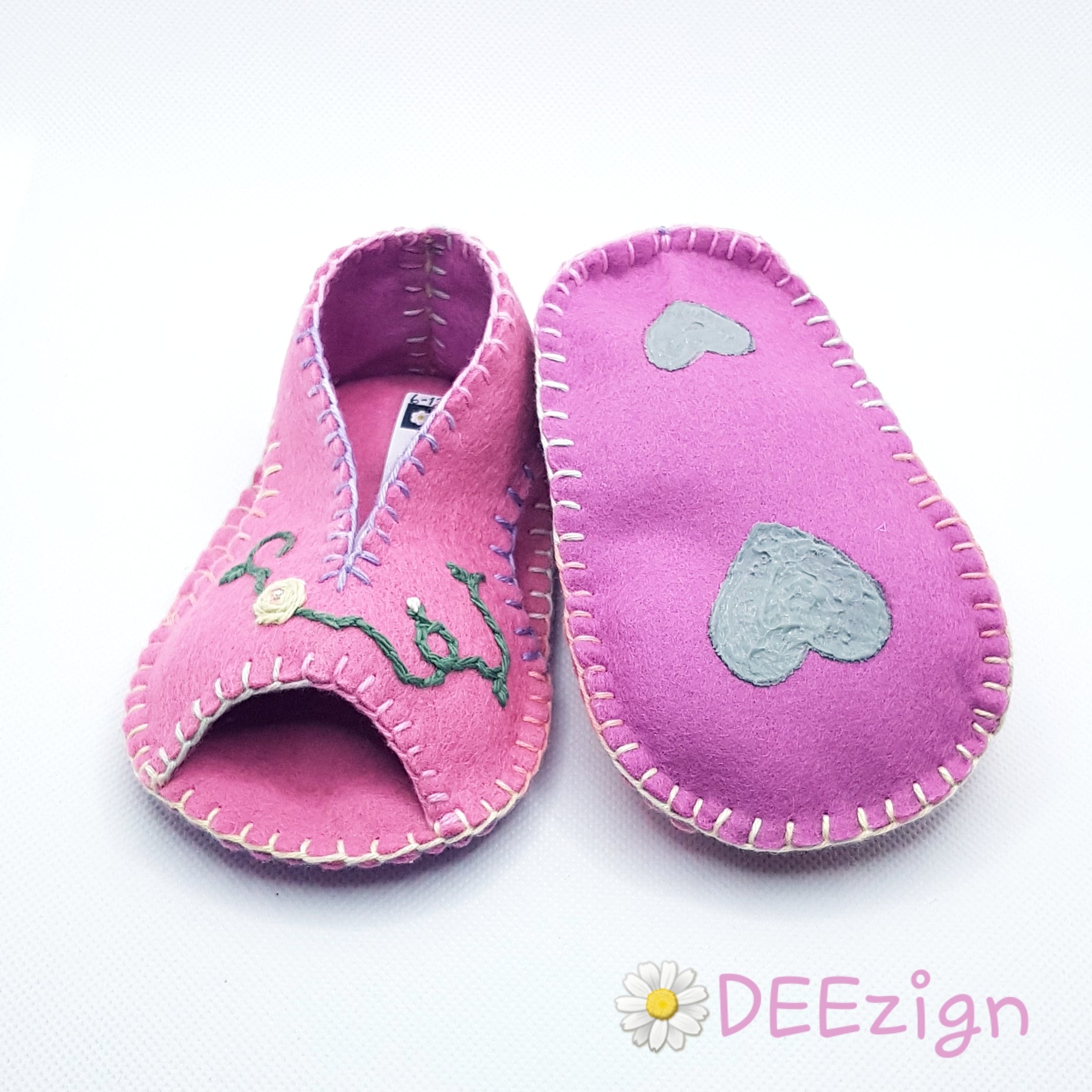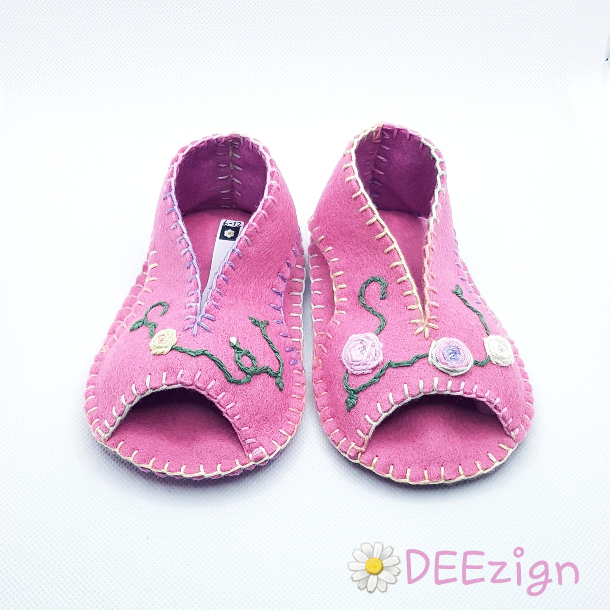 ✿ Pyntet med pæonblomstbroderi & håndmalede skridsikre motiver på sålerne