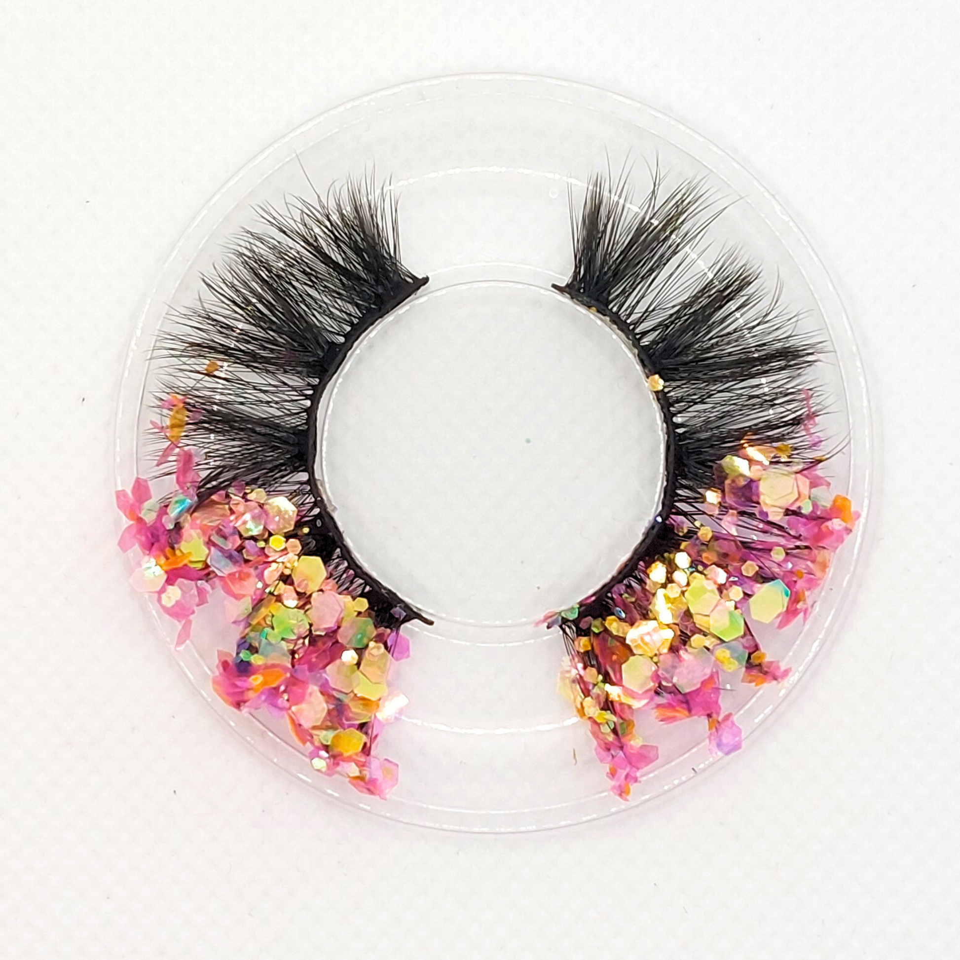 Med Glitter Me's luksuriøse, sparkling kunstige øjenvipper pyntet med forskellige farveblandinger af glimmer og pailletter, opnår du perfekte forførende og sparkling øjne, da deres powerful glam design givet et ultimative glamourøst vippelook, der tilfører både volumen, længde, farve og sparkle!
