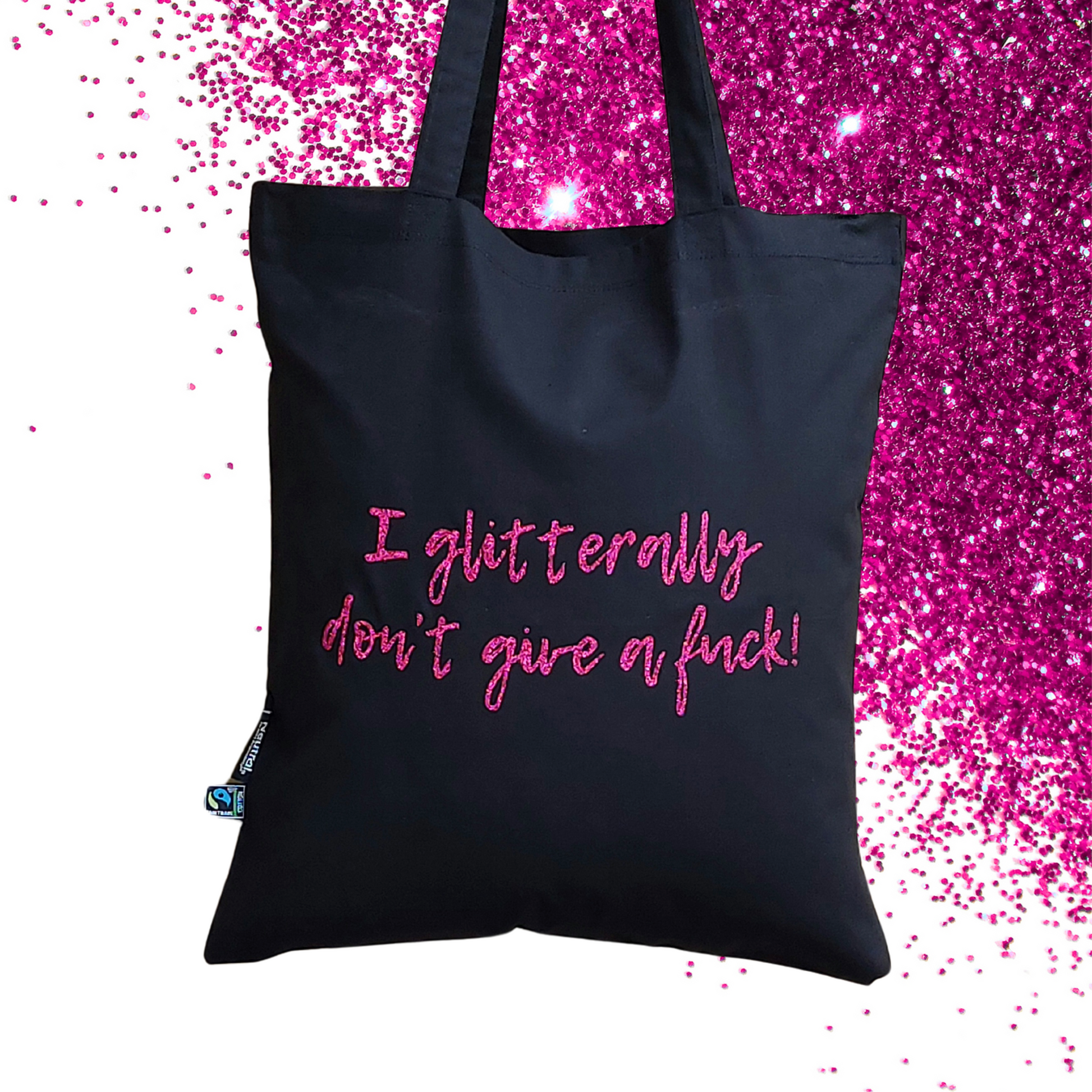 Shopping bag - I glitterally don't give a fuck! - Glimmer: Hot Pink