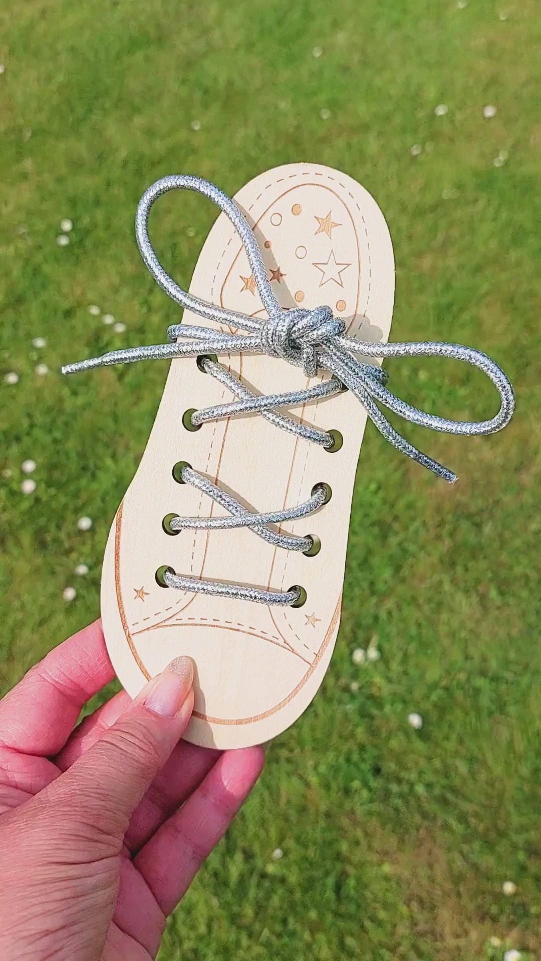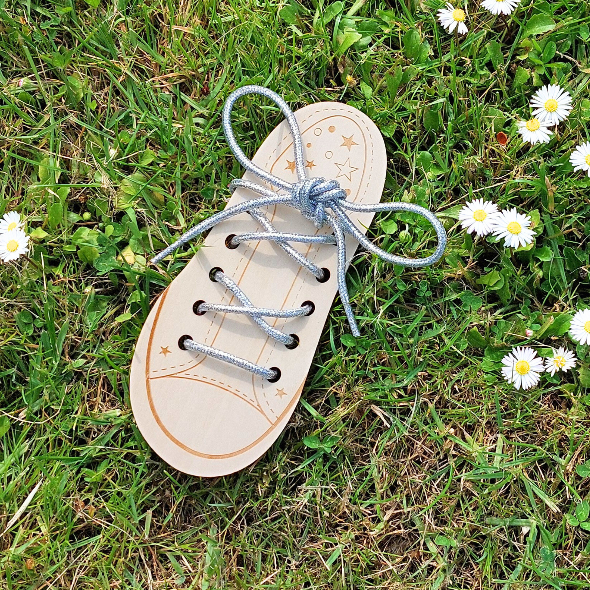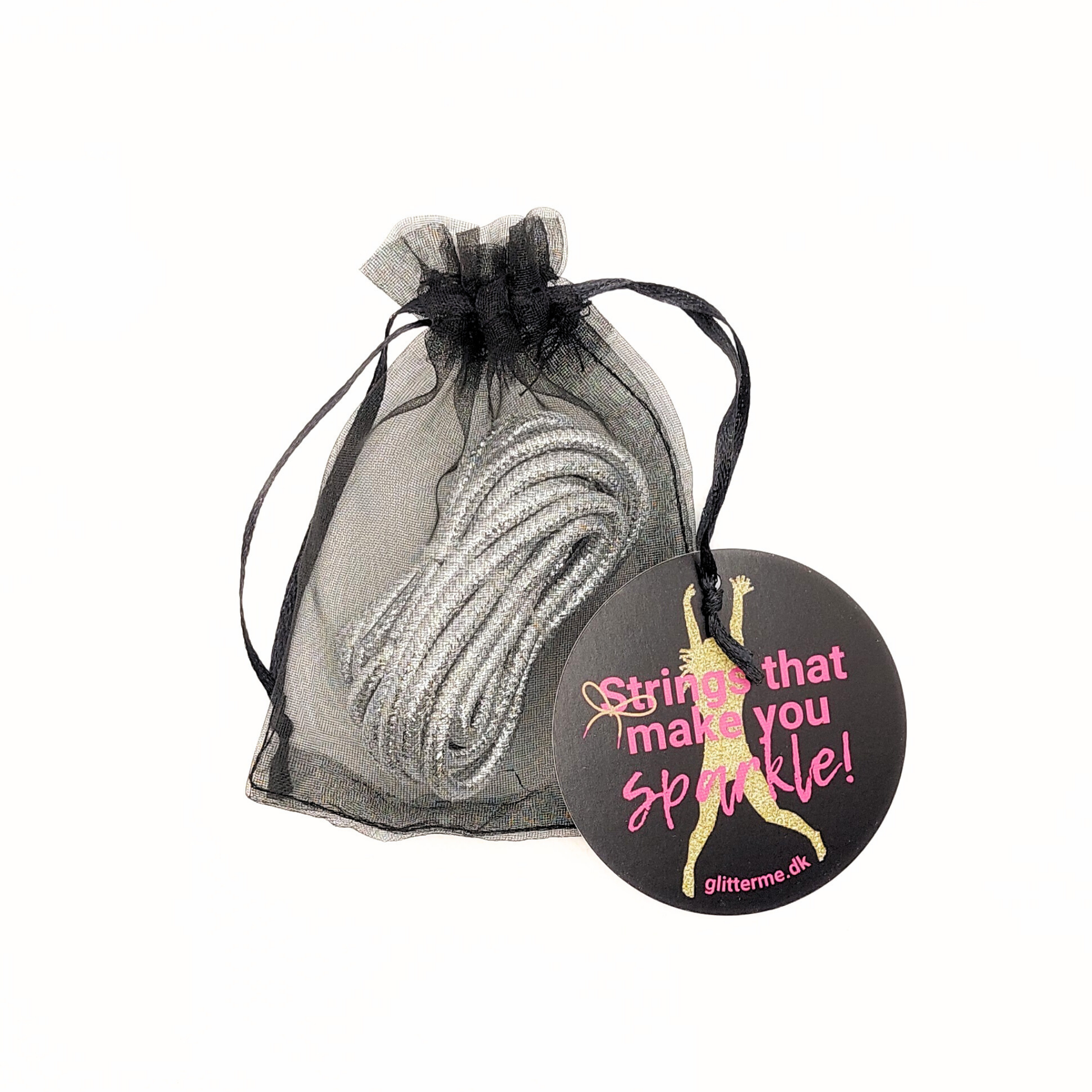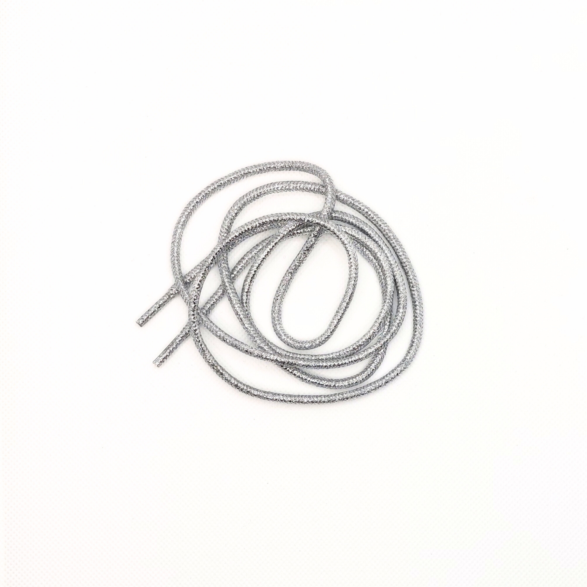 Trendy glimmer snørebånd i metallisk sølv.