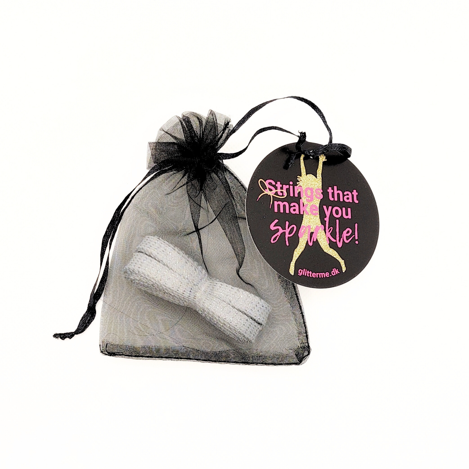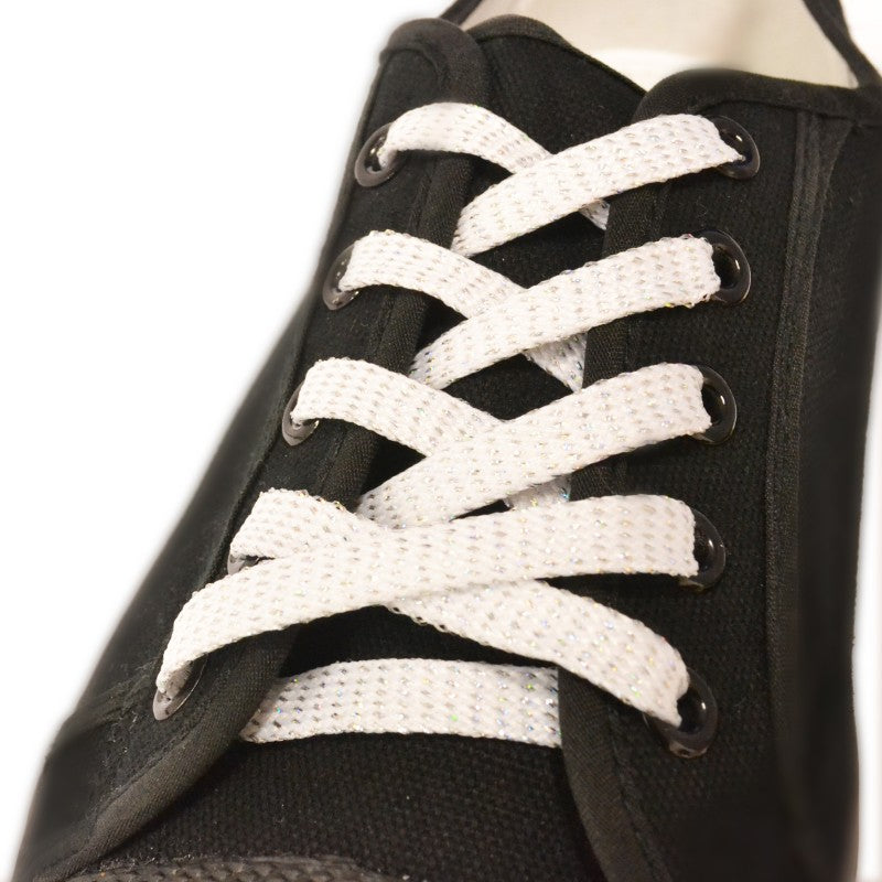 Trendy glimmer snørebånd i hvid og metallisk sølv.