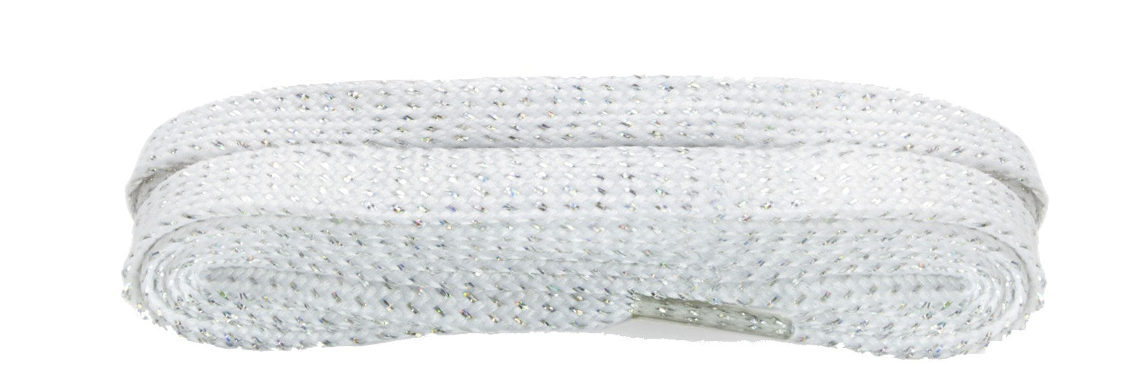 Snørebånd - Hvid med Sølv Glitter - Flad - 100 cm