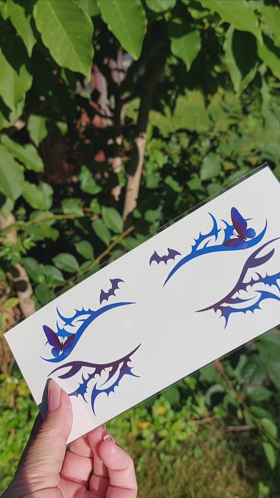 Tatovering - Halloween - Bat #3 - Blå/Sort/Lilla - CMYK