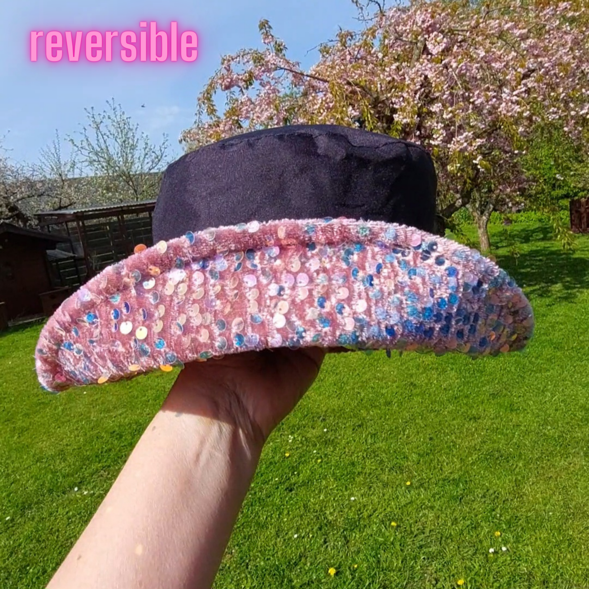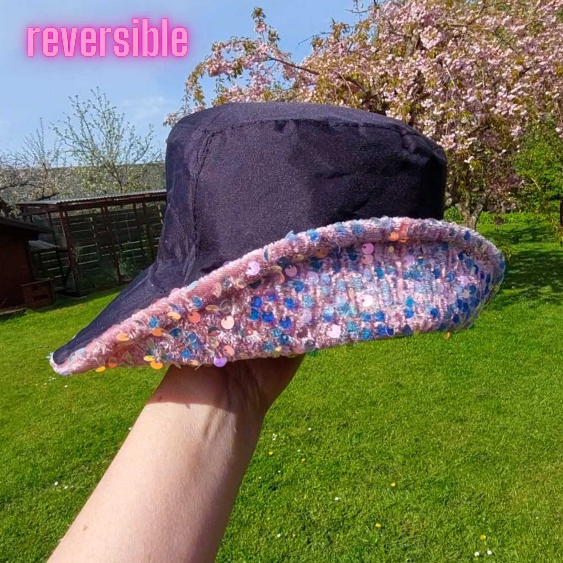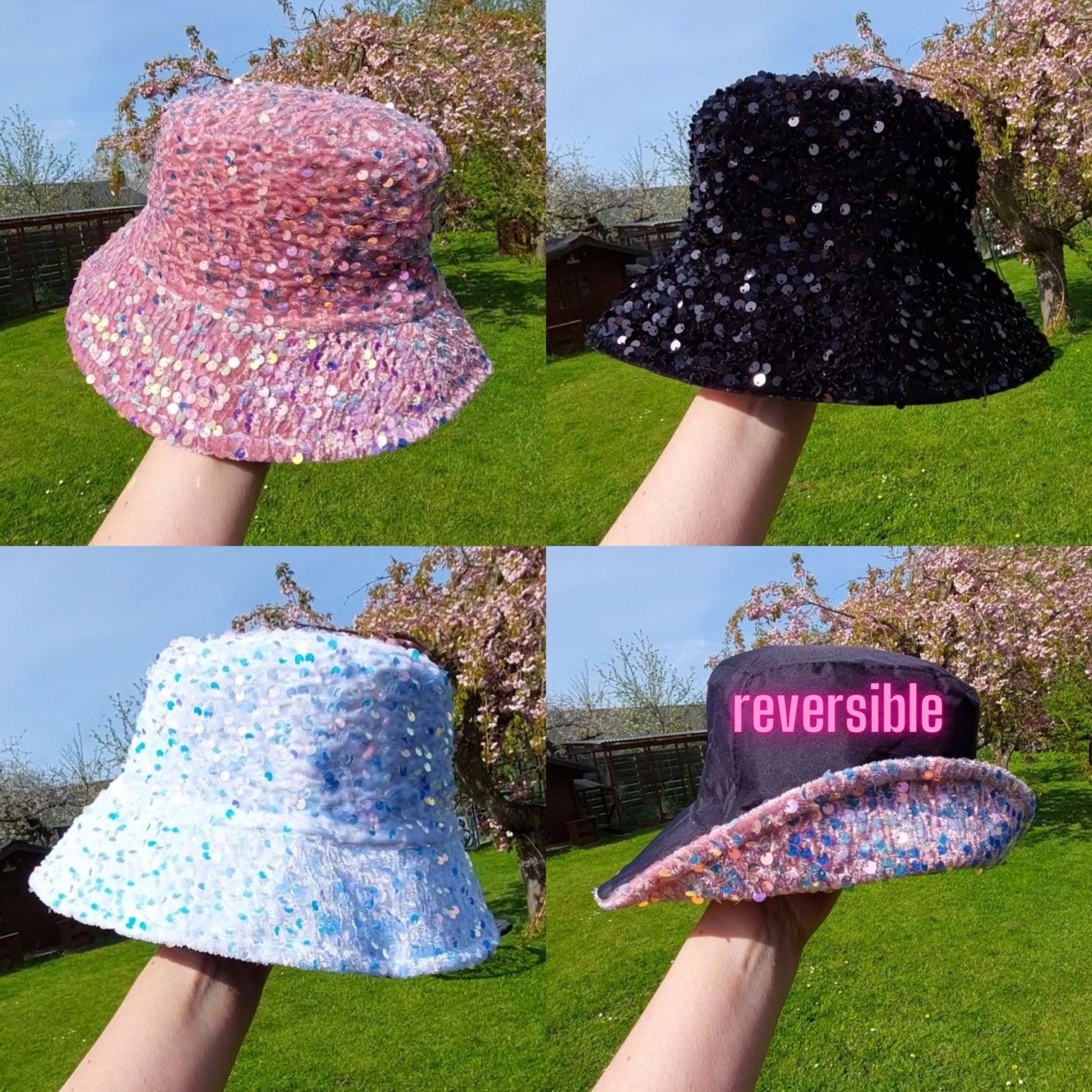 MEGA stylish bucket hat with sequins. Reversible! ...so you get a 2-in-1 effect.